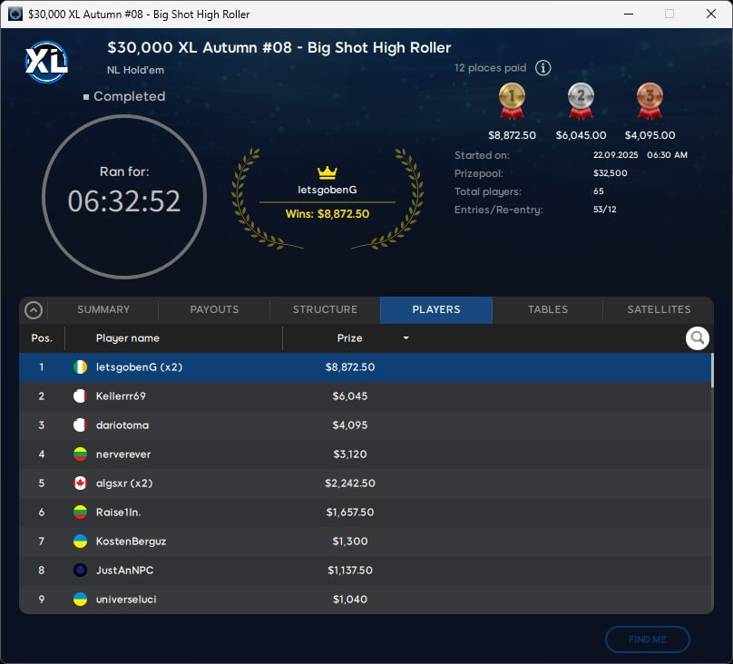 Gestern ist auf 888poker der Startschuss zur XL Autumn Series gefallen. Direkt zum Auftakt stellte die deutschsprachige Poker-Community einen der Sieger. Im $16,50 Mystery Bounty Mini setzte sich Cansin14 ($1.657,76) durch.