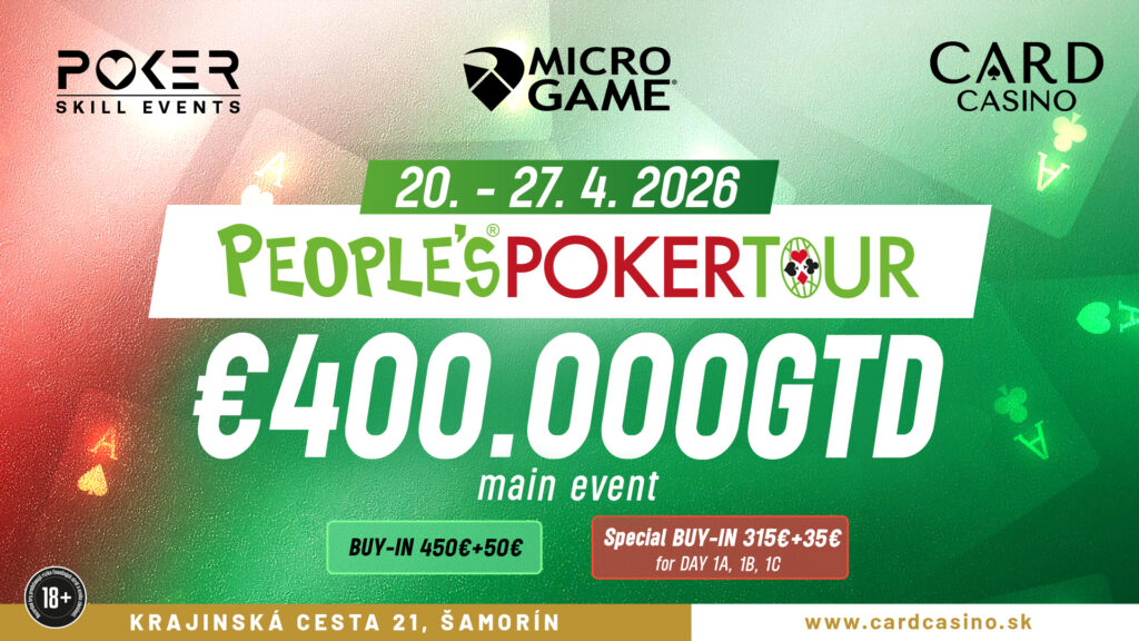 Kommendes Wochenende warten das € 50 Super Friday (€ 10.000 GTD) und das € 100 Saturday Monster Stack (€ 20.000 GTD), ehe am 27. April der Startschuss zur € 250 Euro Poker Championship (€ 250.000 GTD) fällt. Bei den Cash Games wird täglich ab € 1/3 NLH bzw. € 2/2 PLO mit verschiedenen Aktionen gespielt. Bei Fragen könnt Ihr Euch gerne an Marketing Manager Jan Packa (englisch) wenden, alles Weitere findet Ihr unter bancocasino.sk.
