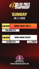 Drei-, vier-, sogar fünftausend Entries sind bei den polnischen Events im Banco schon seit Jahren quasi Standard. Letztes Jahr schaffte man mit 7.084 Entries einen neuen Rekord, der aber tatsächlich nur für ein Jahr halten sollte. Gestern, den 8. November, standen die letzten beiden regulären Flights mit 40.000 Chips und 30 Minuten Levels an, in der Nacht gab es noch den Turbo Flight mit 15 Minuten Levels.