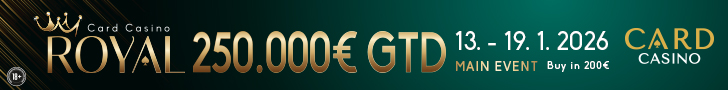 Heute Abend kann man den Bonus wieder jagen, um 18 Uhr steht Tag 1C zu den bekannten Konditionen an. Bei den Cash Games geht es wie immer ab den Blinds € 1/2 NLH bzw. € 2/2 PLO los. Alle Details zum kompletten Angebot findet Ihr unter cardcasino.sk.
