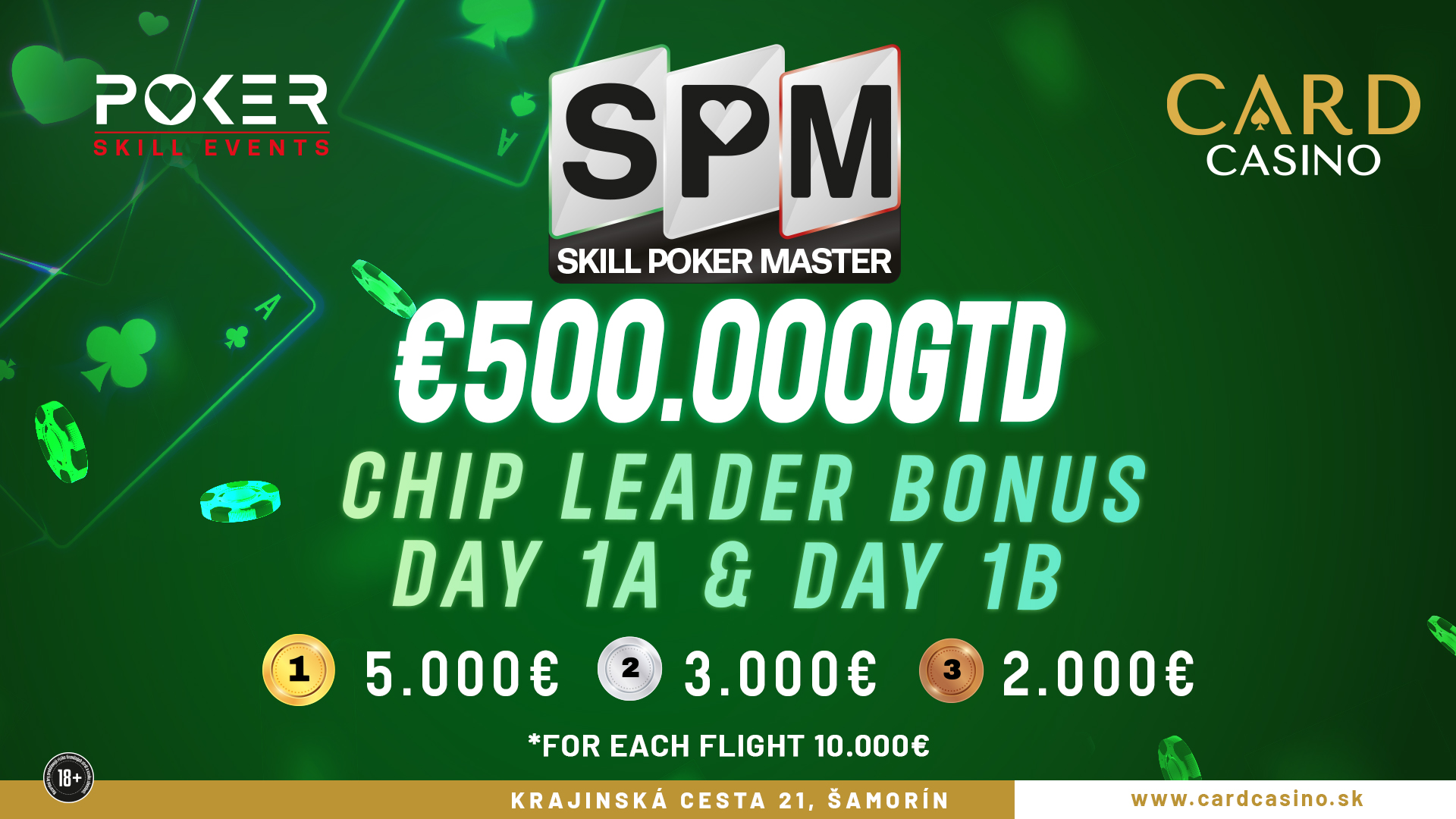 Der zweite Flight beim € 310 + 40 Skill Poker Master (€ 500.000 GTD) im Card Casino Samorin bei Bratislava brachte gestern, den 28. August, Rudolf Kosa den Chiplead und damit auch € 5.000 Chipleader Bonus.