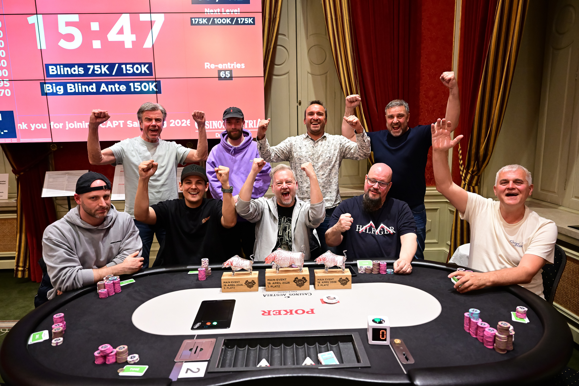 Der Final Table hatte ein hohes Tempo, insgesamt dauerte es nur rund 1,5 Stunden, bis der Sieger feststand. Für Marijan Tadic reichte es am Ende aber auch nicht, auf Rang 6 für € 7.150 hatte er Feierabend. Die top 3 erhielten zum Preisgeld das € 550 CAPT Million Ticket und es war Sven Luha, der sich € 16.840 + Ticket für Rang 3 abholte.