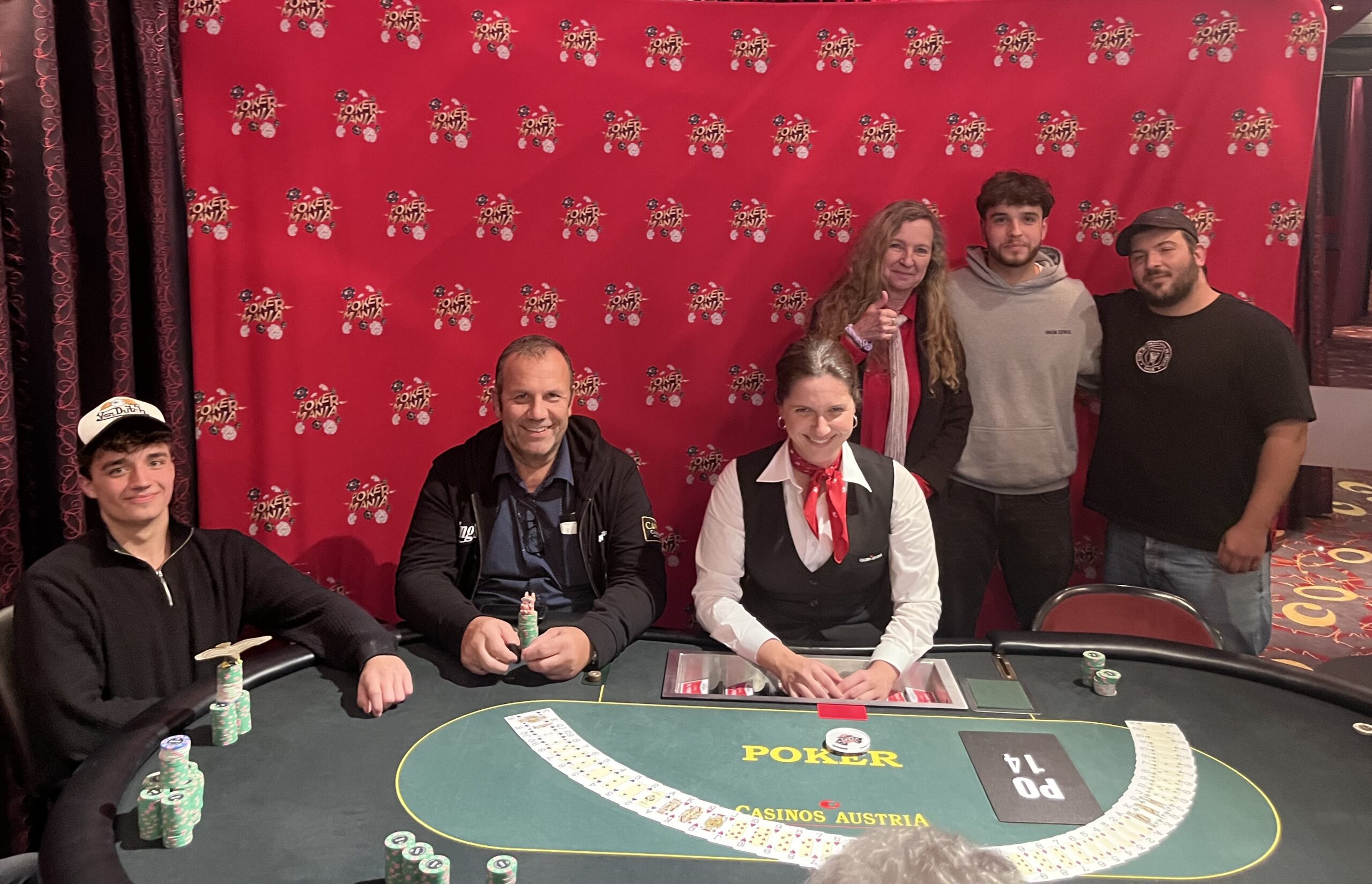 Mit guter Stimmung ging es auch an den Final Table, Geschenke gab es dort aber keine – und auch keinen weiteren Deal. Dejan Veslinovic setzte sich im Heads-up gegen Joel Grasl durch und sicherte sich so den Sieg für € 3.770, Joel tröstete sich mit € 2.650.