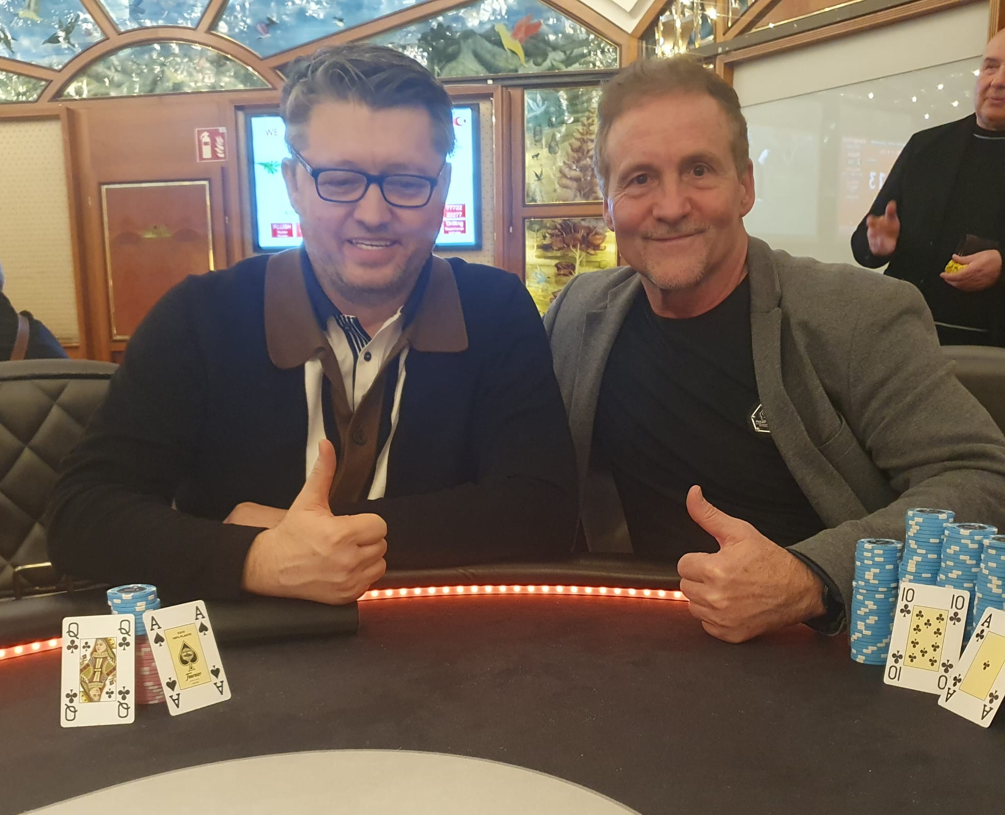 20.000 Chips und 20 Minuten Levels waren die Startbedingungen, an denen gleich 88 Spieler Gefallen fanden. Mit weiteren zwölf Re-Entries waren es runde 100 Entries und damit € 10.000 Preisgeld im Pot. Die ersten 15 Plätze waren bezahlt, € 230 gab es dabei als Min-Cash, € 2.480 warteten auf den Sieger. Im Heads-up gab es dann aber einen Deal, Cheesy nahm € 2.075 für den Sieg mit, Chris € 2.070 für Platz 2.