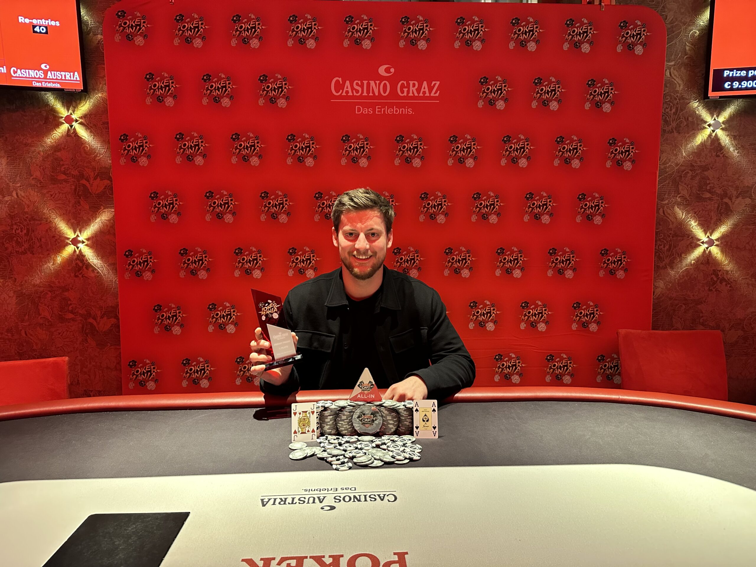 Auch das € 75 + 15 Freaky Friday (€ 7.500 GTD) der Pokermania im Casino Graz sorgte gestern, den 6. März, wieder für volle Tische, Alex ging nach einem Deal zu dritt als Sieger vom Tisch.