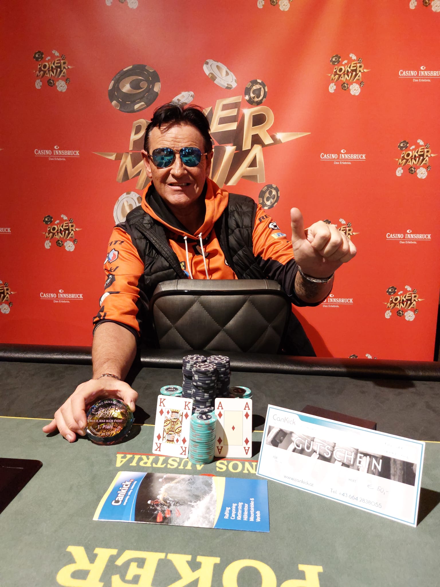 € 20.600 wurden auf die top 15 Plätze verteilt, der Sieger konnte sich auf € 5.160 freuen. Viele der Tiroler Regulars waren mit dabei. Nachdem Tobias Wurm auf Rang 4 (€ 1.800) ausgeschieden war, einigten sich die letzten drei auf einen Deal. Dabei sicherte sich Reinhard Dersch mit € 4.185 das meiste Geld, am Podest musste er dann aber Rene Heinricher den Vortritt lassen. Für Rene gab es € 3.570 + € 50 Cankick Gutschein, Eduard Lungu kassierte für Platz 3 noch € 3.250.