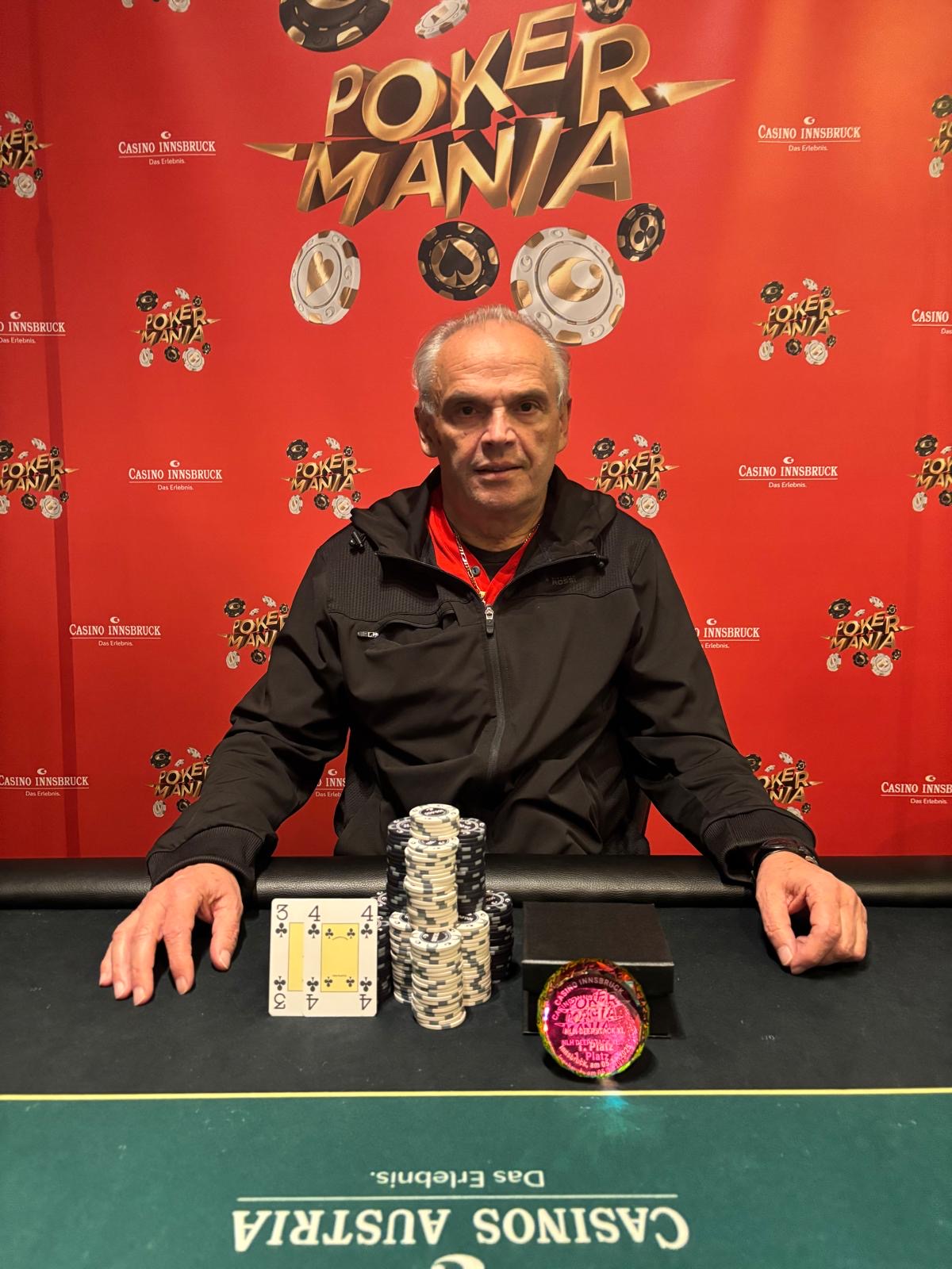 Mit dem € 100 + 20 Deepstack XL (€ 6.000 GTD) eröffnete das Casino Innsbruck eine neue Pokermania Classic Ausgabe. Nach einem Deal zu viert wurde um den Sieg geflippt, Santi Scolaro hatte das Kartenglück auf seiner Seite.