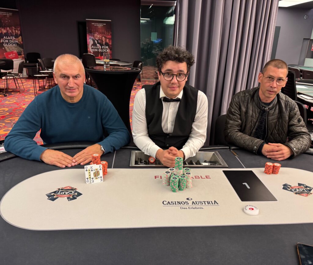 eliminierte und so waren die Geldränge erreicht. Kurze Zeit später nahmen die letzten neun Spieler am Final Table Platz – den Christian Leichtfried gleich wieder mit Rang 9 (€ 140) verlassen musste. Als nur noch vier Spieler übrig waren, schickte Djuro Surudzic mit