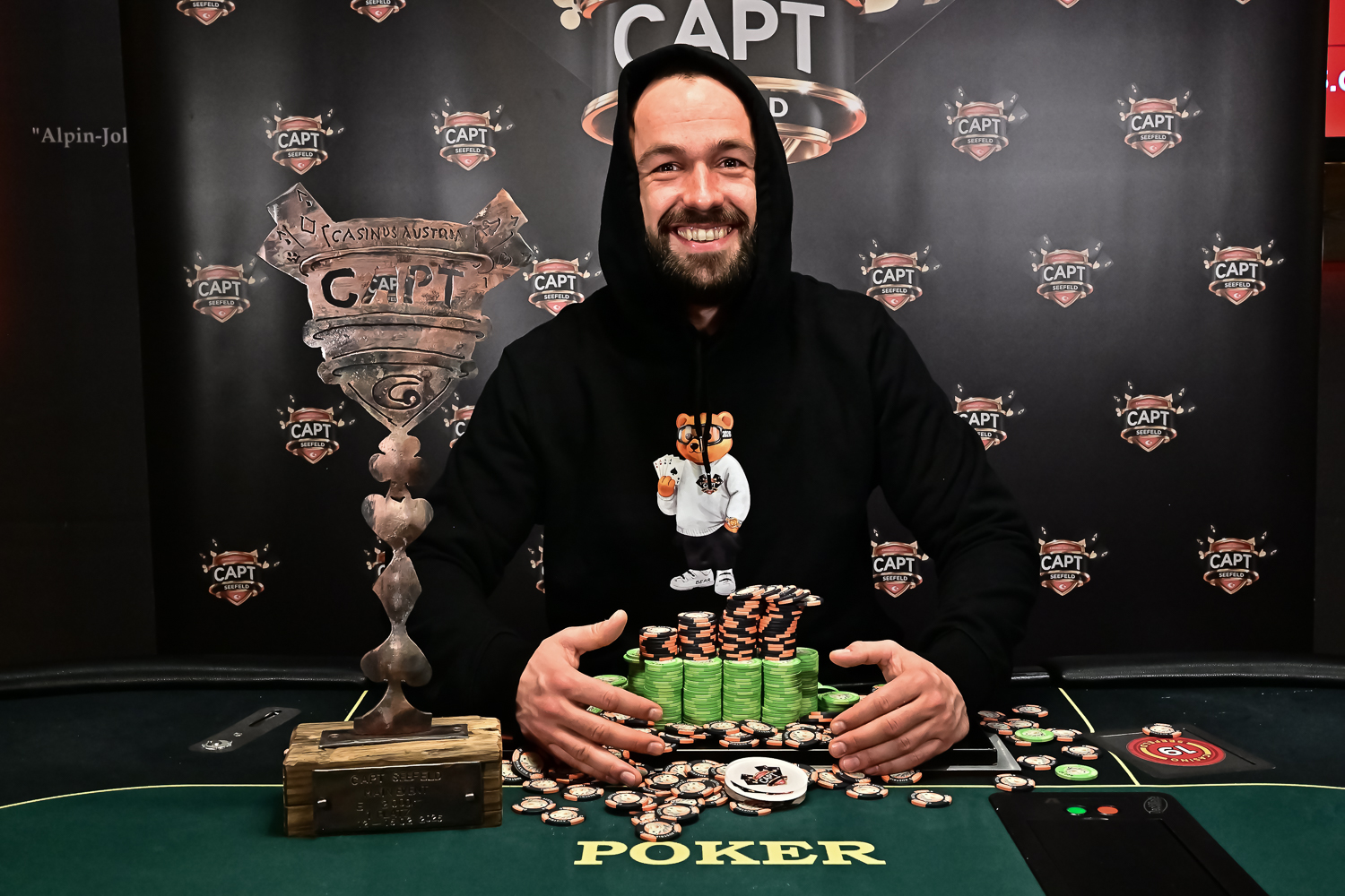 Herzstück der CAPT Seefeld war aber einmal mehr das € 2.200 Main Event. An die Rekordzahlen kam man zwar nicht heran, aber mit 236 Entries ging es doch um satte € 472.000 und € 100.000 für den Sieger. Und auch hier gab es ein zeitliches Missverständnis. Als die letzten 14 Spieler in den Finaltag starteten, war ein Stuhl leer – der von Ole Schemion. Er dachte, dass das Finale eine halbe Stunde später starten würde und war noch zum Aufguss in der Sauna. Am offenen Casinofenster konnte er dann ein wenig „ausdampfen“, ehe er mit Volldampf zum Sieg stürmte. Für Ole war es die erste CAPT Trophäe, für Runner-up Özkan Soysal wäre es die bereits dritte gewesen. Er hat schon zwei Mal bei der CAPT Innsbruck den Main Event Pokal geholt – und vor zwei Jahren war er ebenfalls Runner-up in Seefeld. Dieses Jahr musste Özkan Ole den Vortritt lassen. Für Ole Schemion war es ganz sicher nicht das höchste Preisgeld in der Karriere, aber das rustikale-familiäre Ambiente im Casino Seefeld mit einem starken, aber doch auch noch bunt gemischten Feld machte diesen Sieg für ihn doch zu etwas Besonderem.