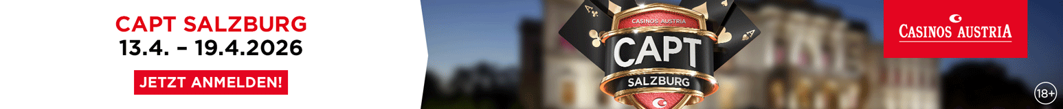 Heute steht bereits das € 2.000 + 200 Main Event (100k/60′) im Mittelpunkt, dazu kommt das € 150 + 50 + 30 PLO Bounty (30k/25′).  Die Cash Games starten wie immer ab € 1/3 NLH bzw. € 2/2 PLO, bei Fragen rund um die CAPT Seefeld wendet Euch gerne an Pokermanager Marcel Pipal unter der Telefonnummer +43 664 8104400 bzw. per Mail an marcel.pipal@casinos.at. Alle Infos und Strukturen findet Ihr unter seefeld.casinos.at.