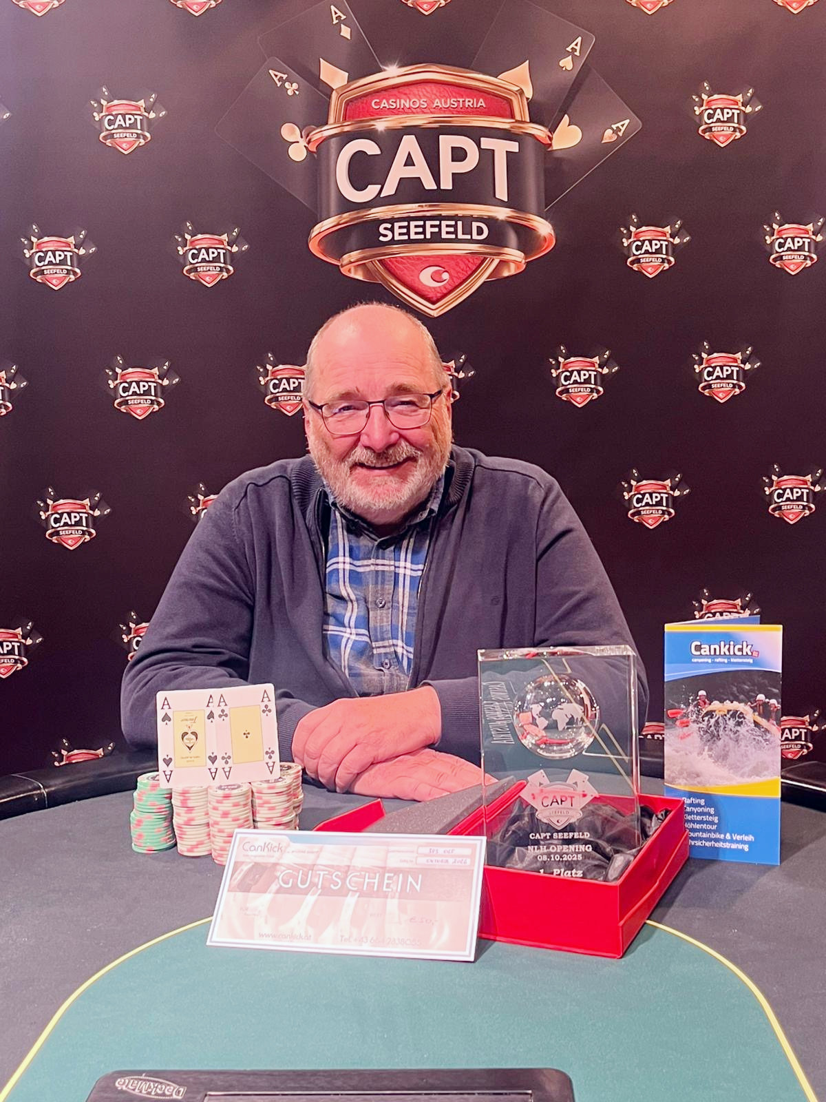 Die top 26 Plätze waren bezahlt, € 455 gab es als Min-Cash, € 7.600 warteten auf den Sieger. Zahlreiche Regulars und CAPT Stammgäste waren mit am Start und konnten sich teils auch in die Geldränge spielen. Am Ende ging der Sieg nach Norddeutschland, Jens Thomsen setzte sich im Heads-up gegen Daniel Brunnmayr durch und sicherte sich die € 7.600 + Cankick Gutschein, für Daniel blieben € 5.200.