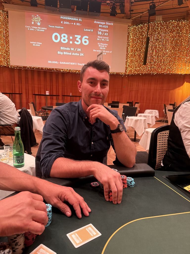 Der zweite Flight der € 200 + 30 Pokermania XL (€ 50.000 GTD) im Casino Velden brachte gestern, den 1. Oktober, ein Double-up bei den Entries, die Führung für Gerhard Schober und die erste Doppelqualifikation.