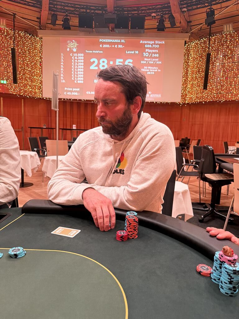 Mit 246 Entries (170/76) hatte man die € 50.000 Preisgeldgarantie ganz knapp verpasst. Von den 37 qualifizierten Spieler hatte es El Fleischo drei Mal ins Finale geschafft, Christoph Rapf, Mike und Roberto Scarpa zwei Mal. Für die jeweils kleineren Stacks gab es € 1.000 als Bonus und mit 32 Spielern ging es dann gestern, den 4. Oktober, ins Finale.