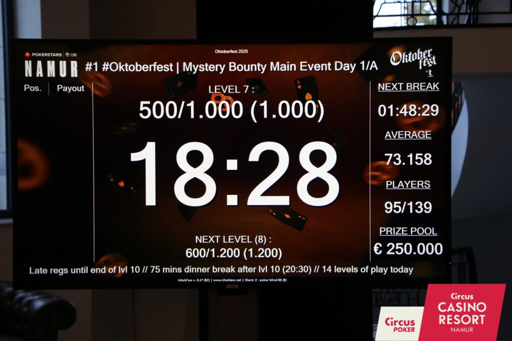 Die Belgier feiern Oktoberfest. € 250.000 Preisgeld sind beim € 350 Mystery Bounty (€ 125) Main Event im Circus Casino Resort Namur garantiert, gestern, den 28. September, fiel der Startschuss.