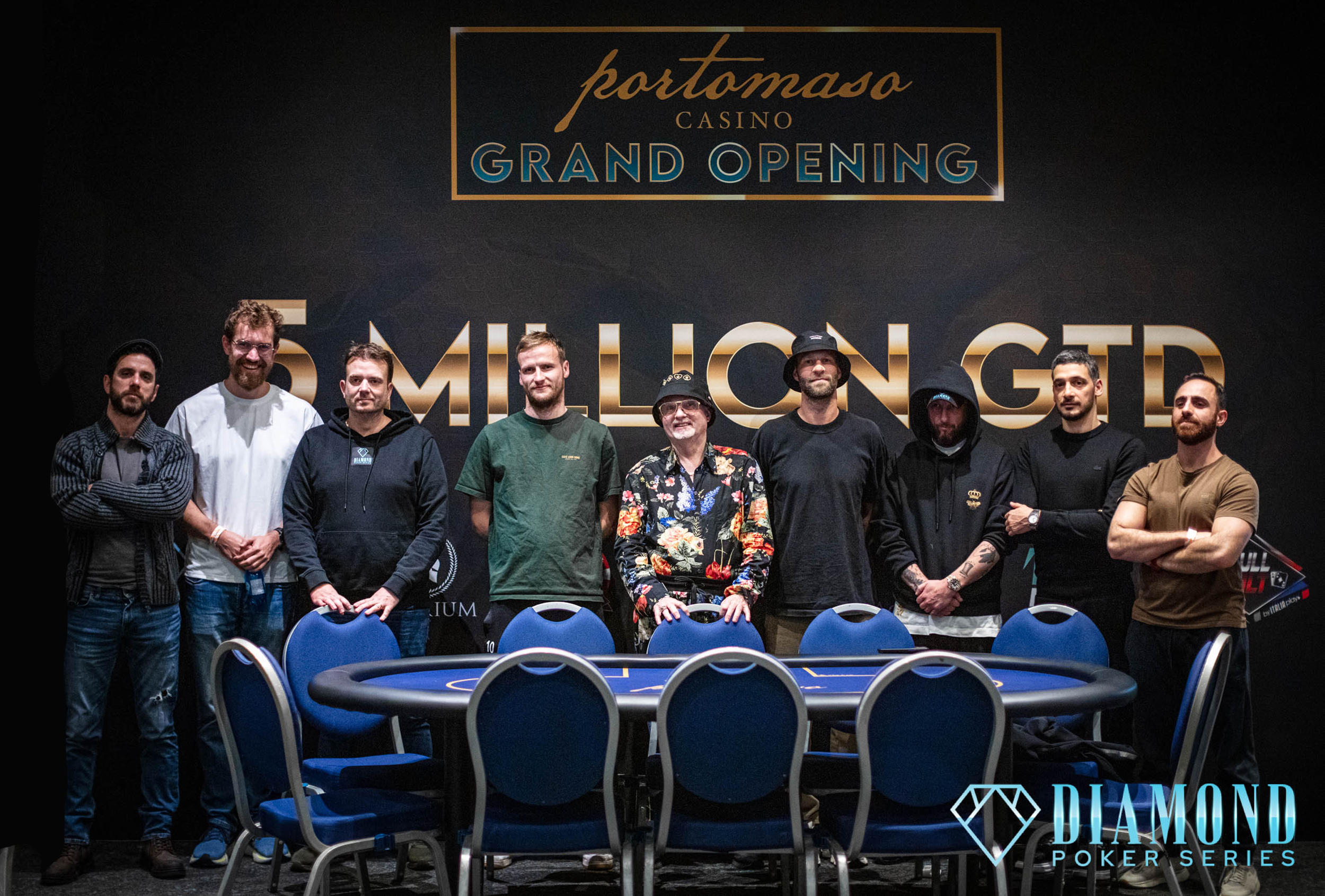 Acht Spieler nehmen heute am Final Table beim € 5.000 + 200 5k Million Event (€ 1.000.000 GTD) beim PLO Grand Slam der Diamond Poker Series im Portomaso Casino am TV Tisch Platz, darunter drei Deutsche.