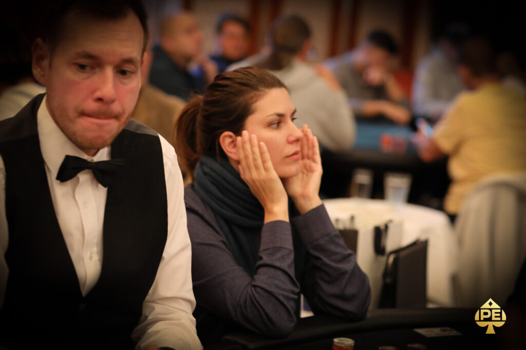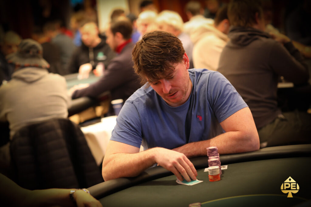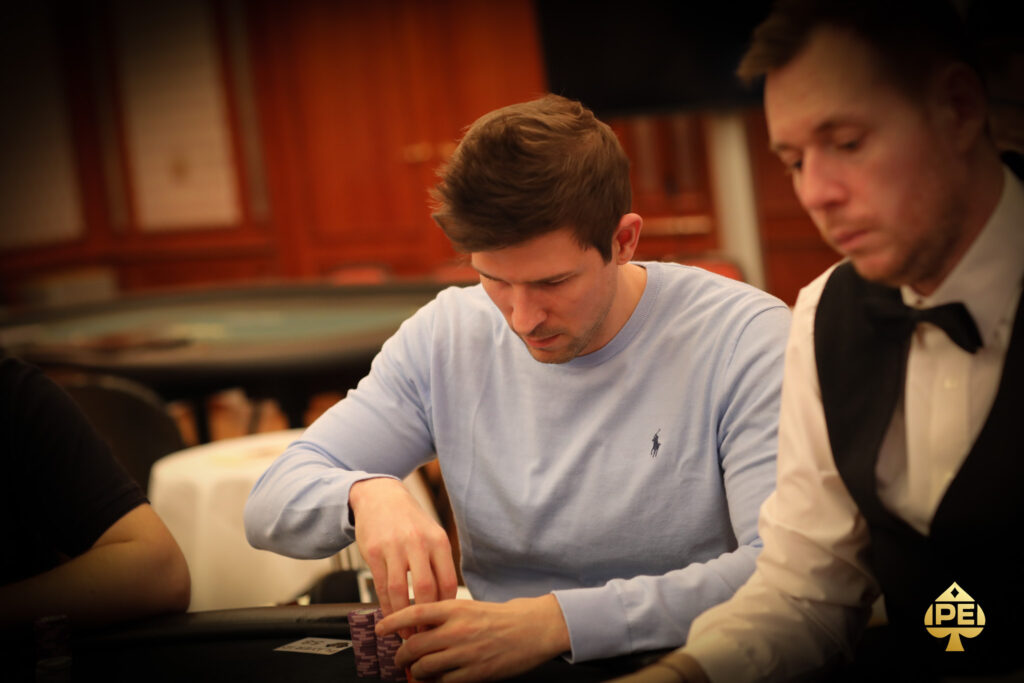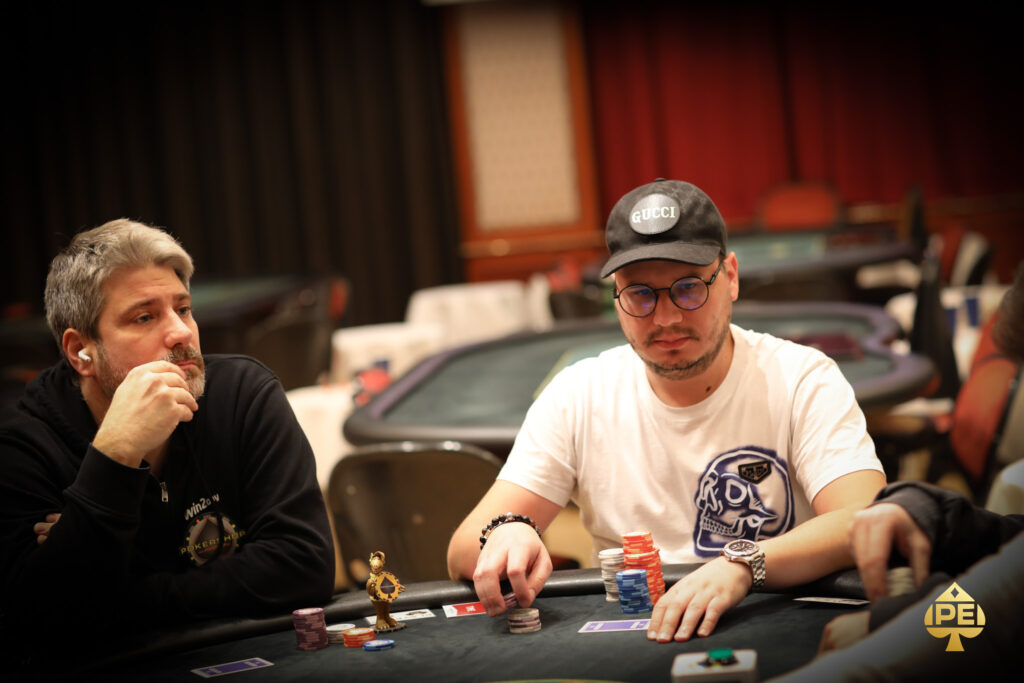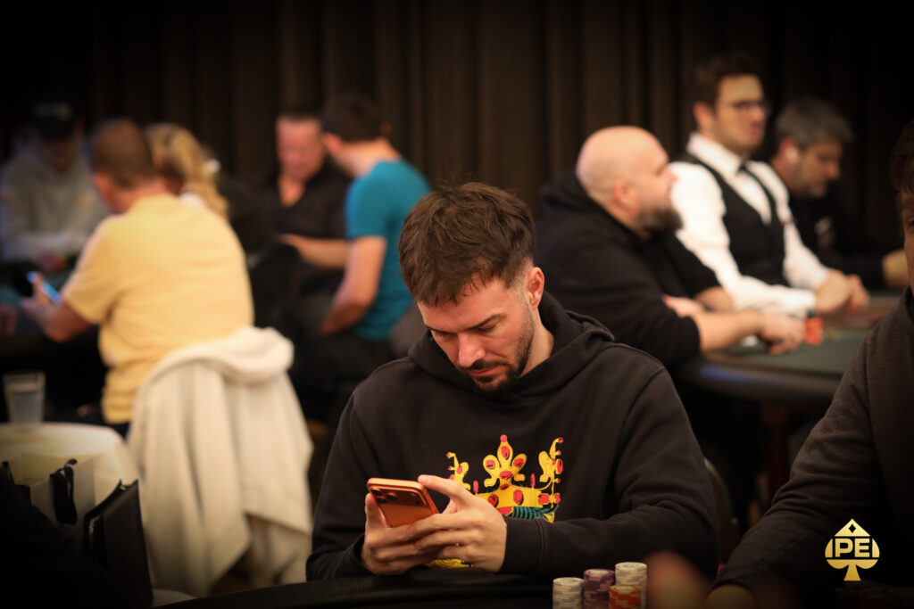Die All-ins gibt es noch immer, aber die Calls werden deutlich vorsichtiger. Aktuell hat jeder Spieler € 7.100 bereits sicher
