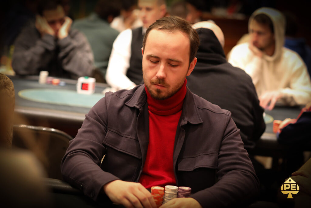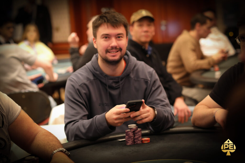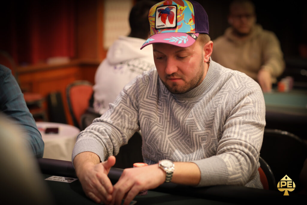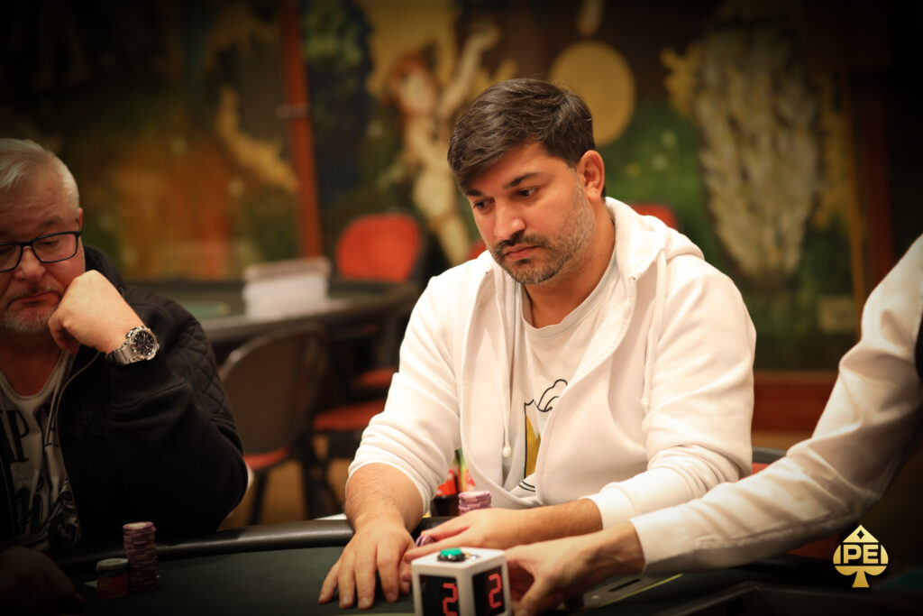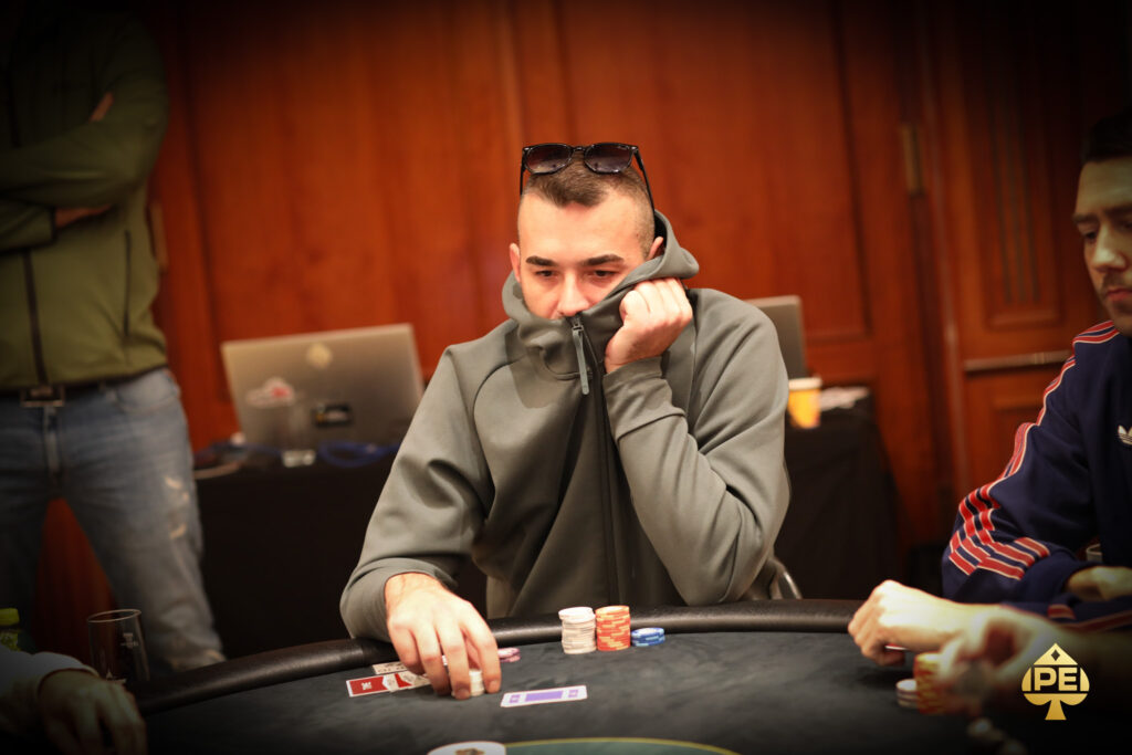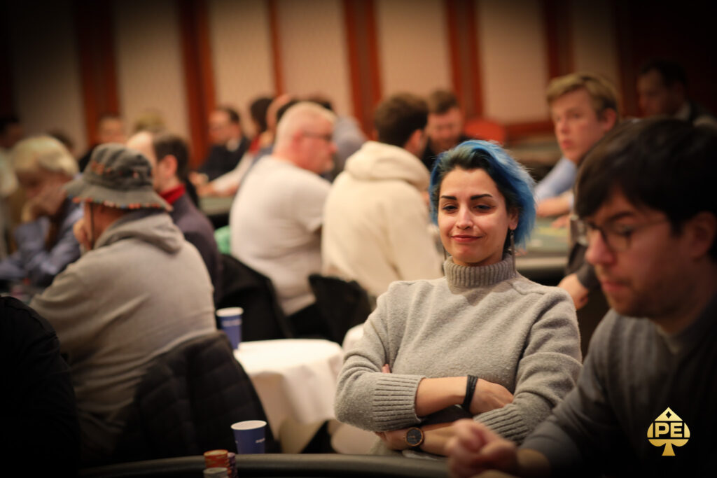 Die All-ins gibt es noch immer, aber die Calls werden deutlich vorsichtiger. Aktuell hat jeder Spieler € 7.100 bereits sicher