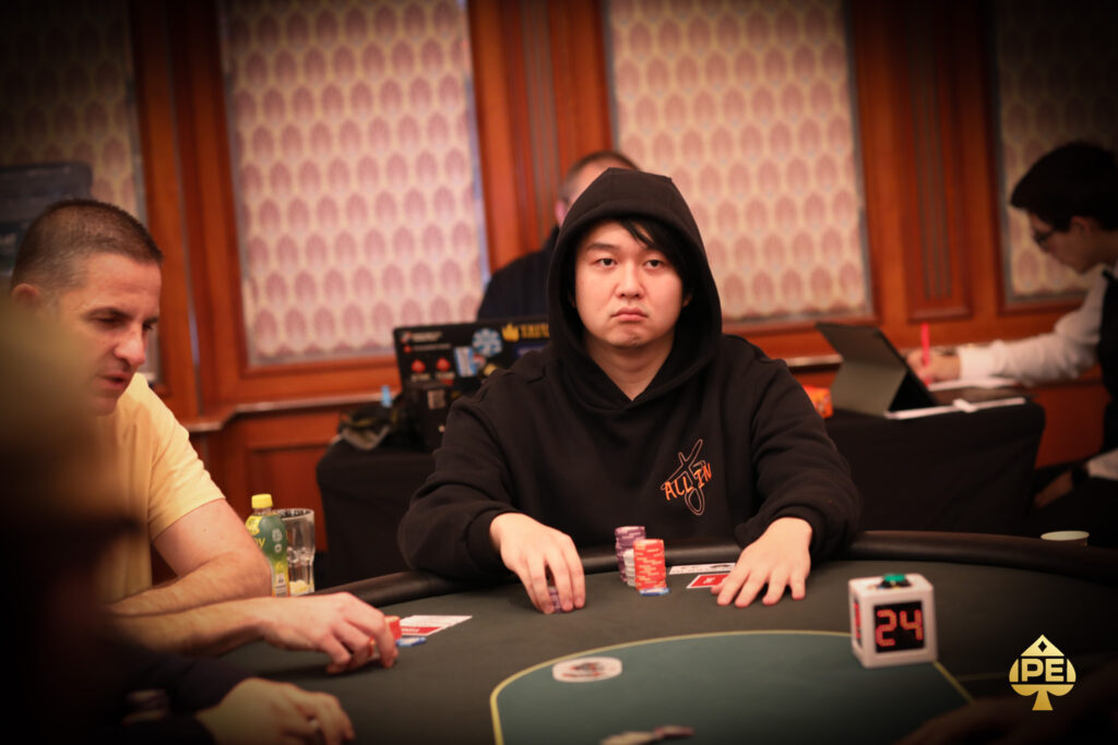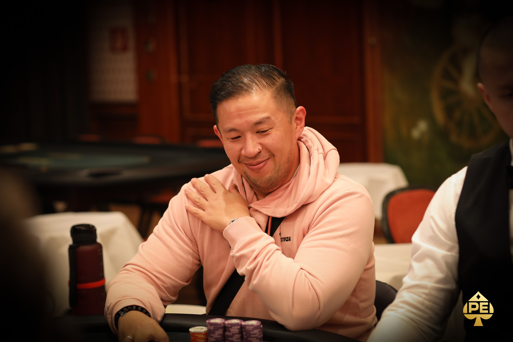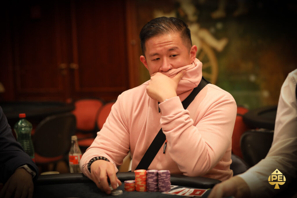 Mit ist Luzhe Zhang all-in, Hyong Kim mit . Das Board und Luzhe Zhang ist knapp gecovert – Platz 14 und € 9.300 für ihn