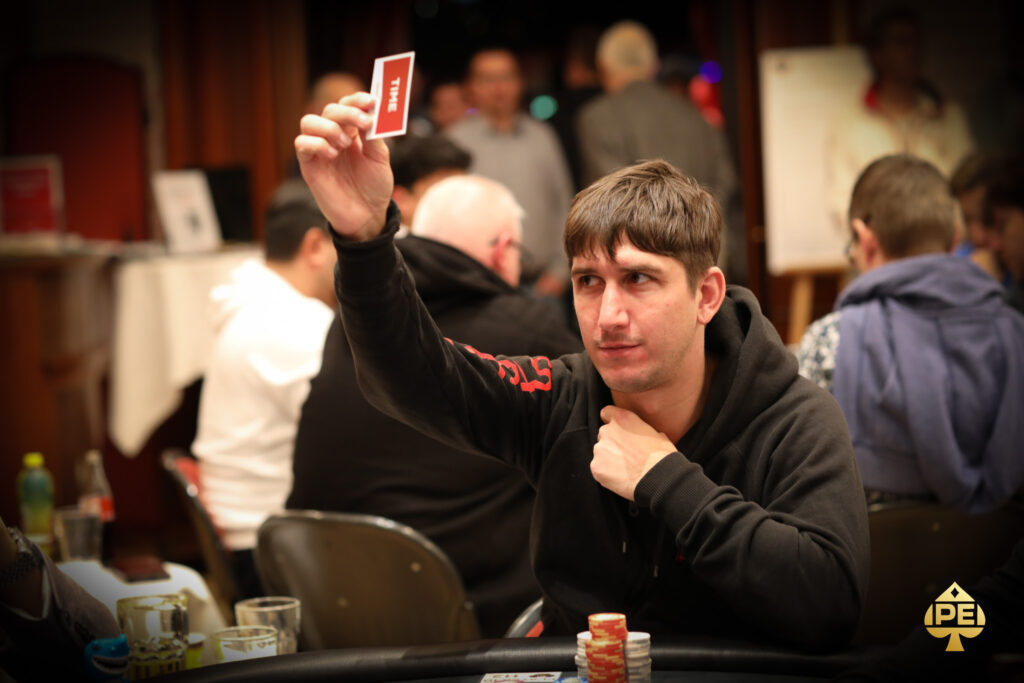Die Clock ist angehalten – 5 Hände werden noch gespielt.