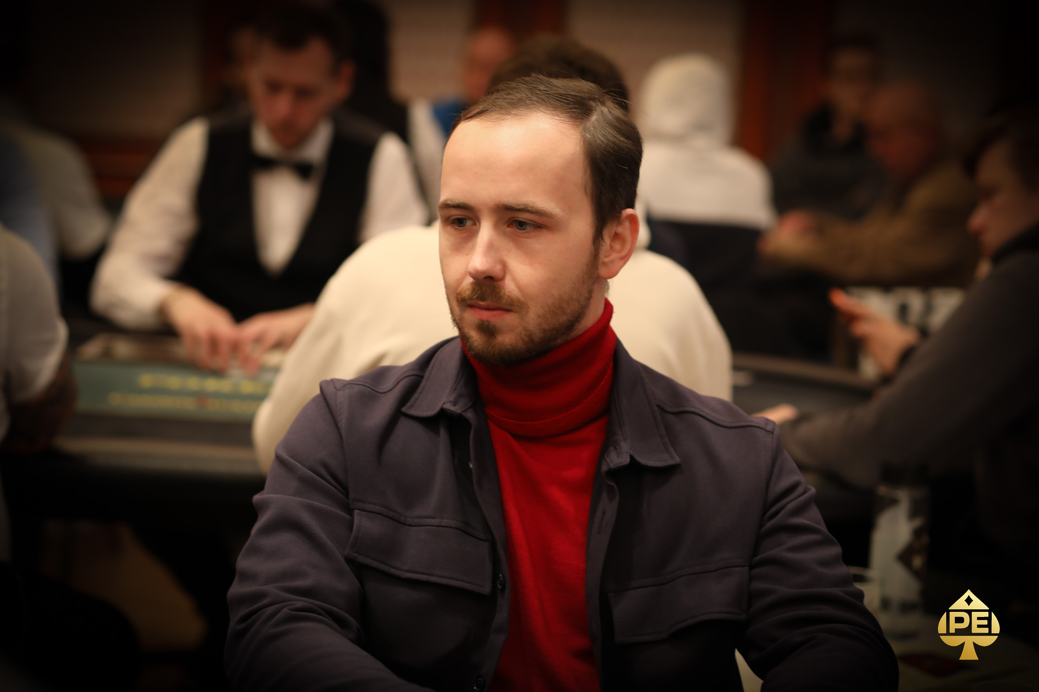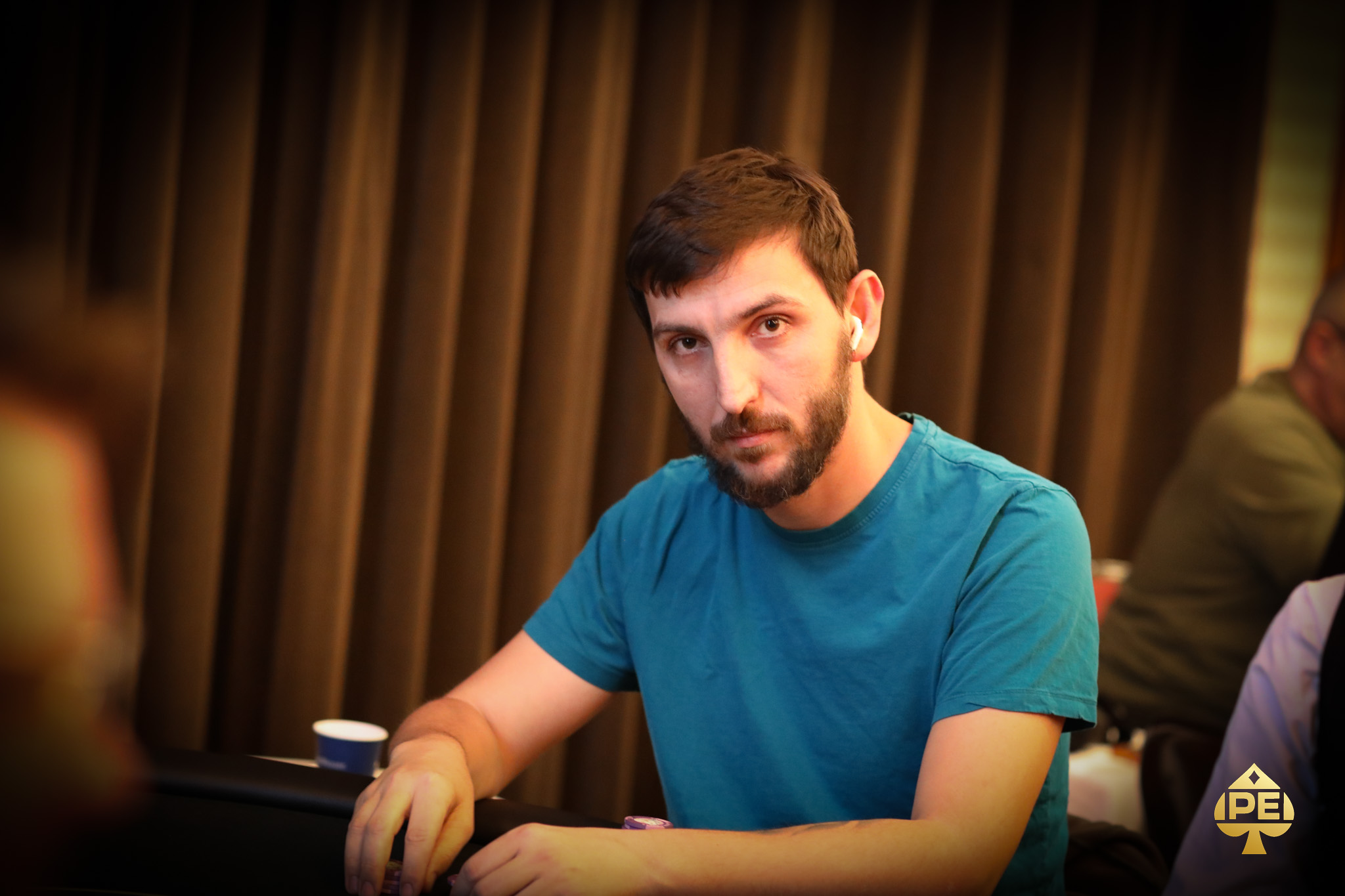 Mit kann Niki Kovacs für 5.100k gegen von Vitalii Shcherba verdoppeln, das Board und Niki bleibt
