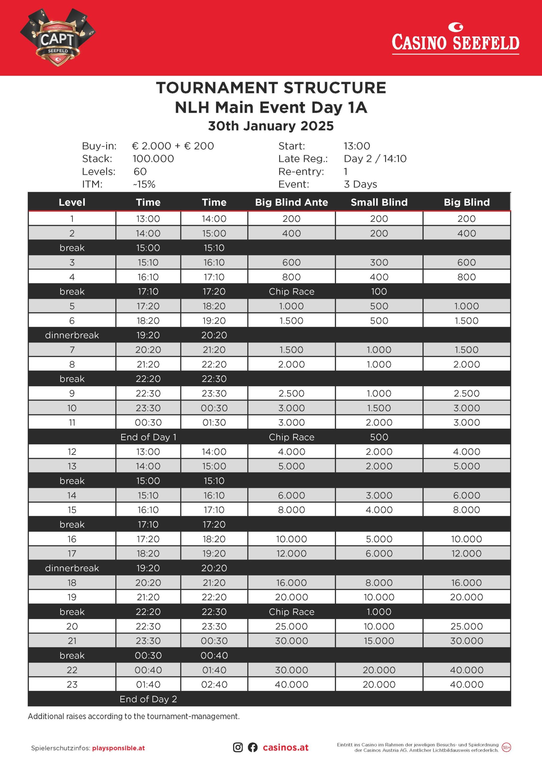 47 Spieler sind übrig, bei den Blinds 2k/4k/4k geht es für sie am Samstag weiter.