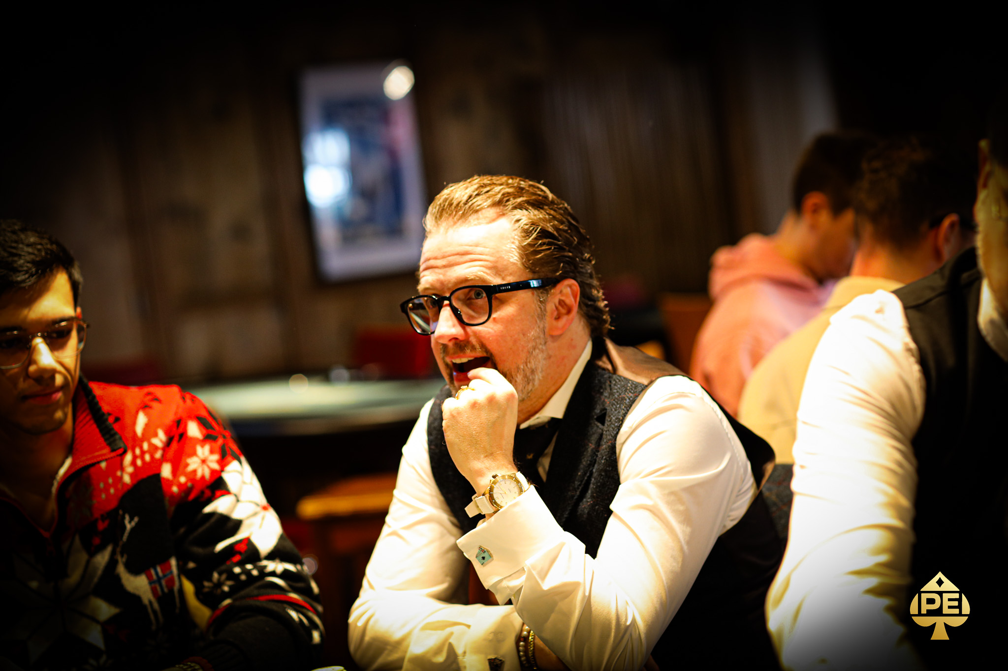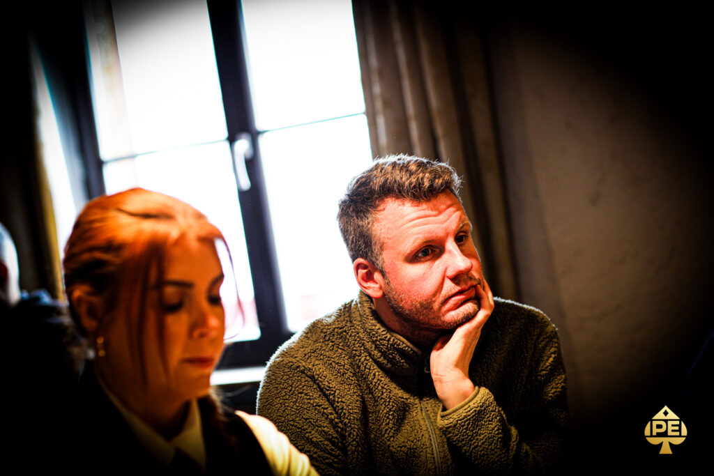 Die Blinds sind 10k/20k/20k (Average 786k) – 30 Spieler, alle haben € 4.675 sicher