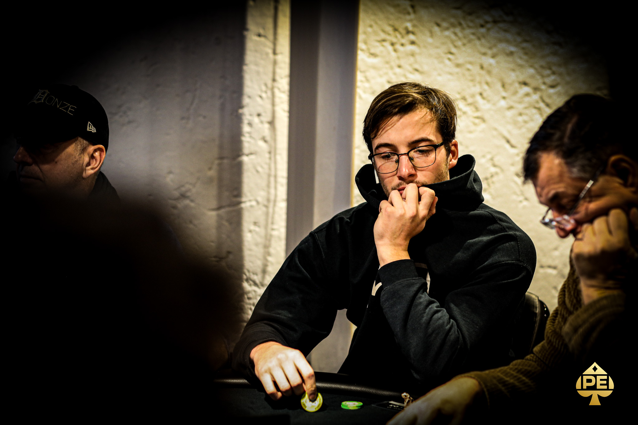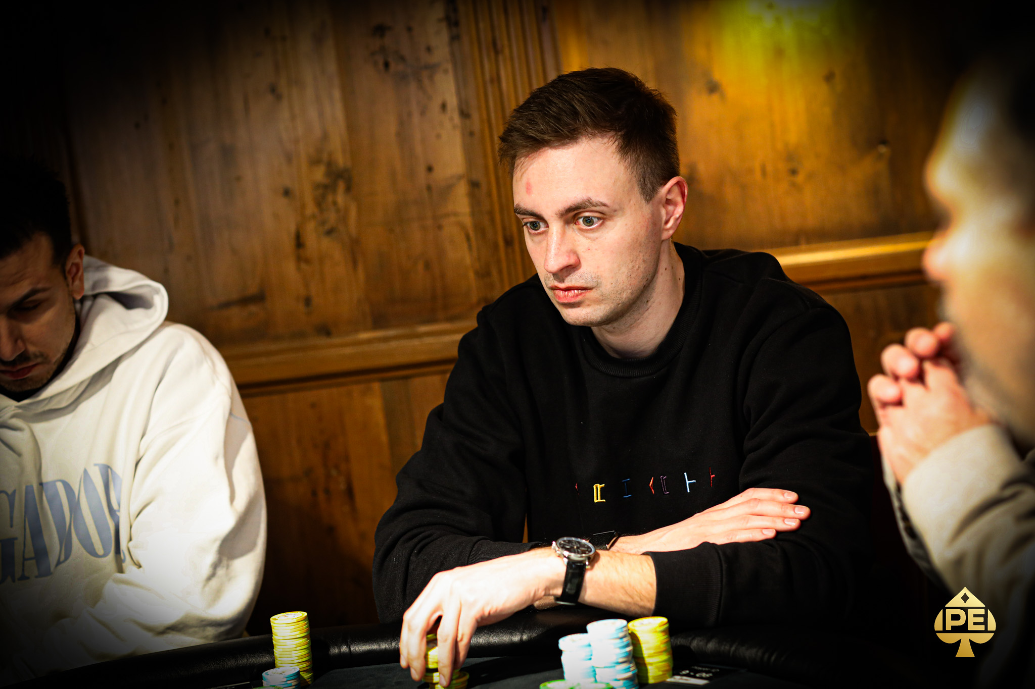 Philipp Hofbauer raist, Drazen Hadur geht all-in, Adrian Strobel callt und callt dann auch das All-in von Philipp. Drazen Hadur hat
