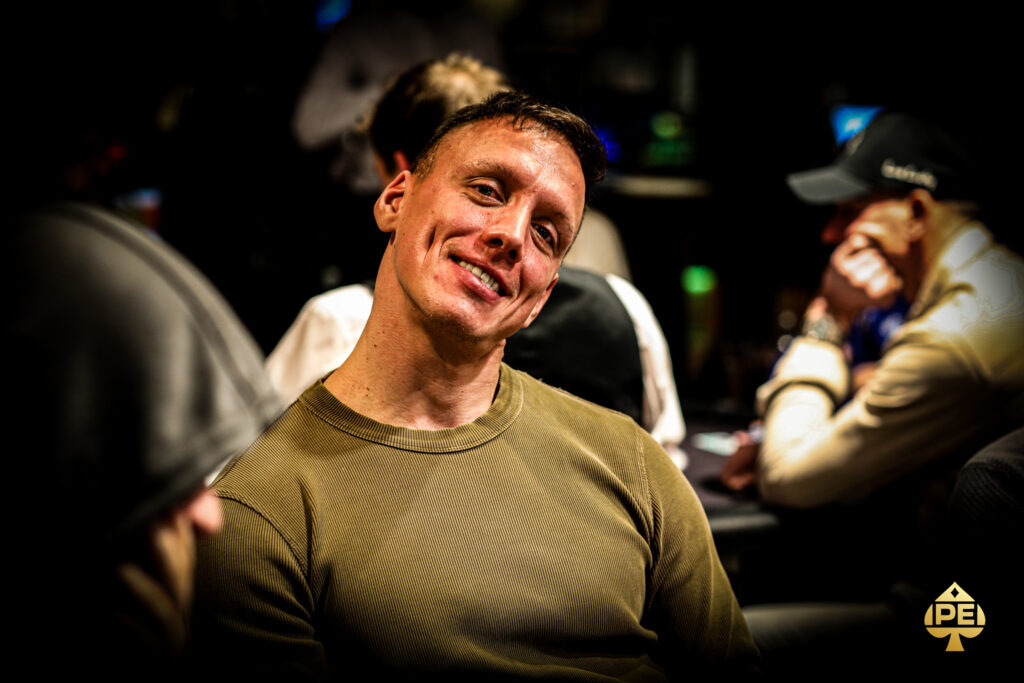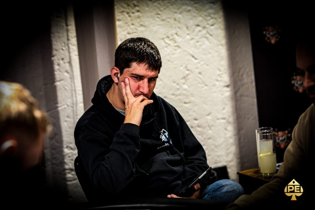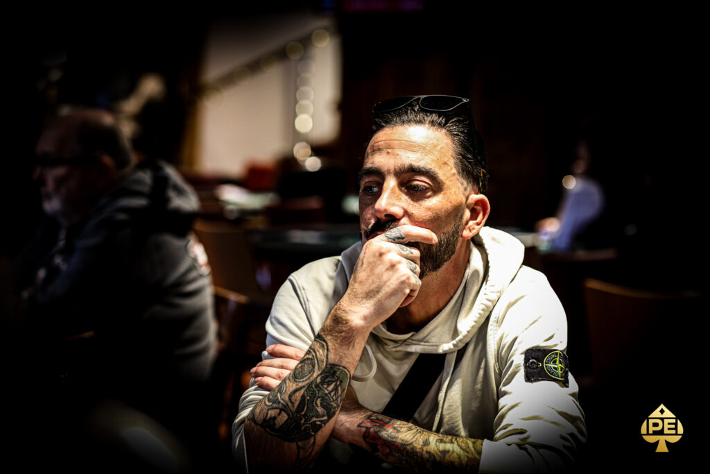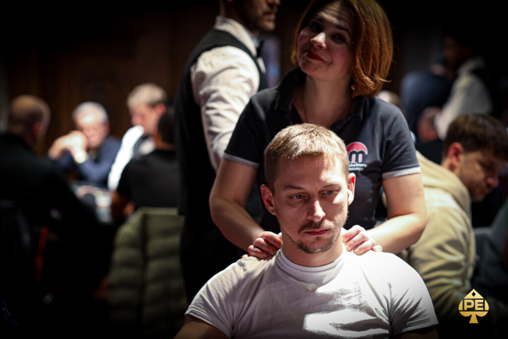 Es ist tatsächlich sehr ruhig an den Tischen, mit 70 von 74 Spielern sind wir in Level 4, die Blinds 400/800/800. Auch Dennis Wilke, Jen Tonic, Lauchi, BJ, Özkan Soysal, Max Steinmüller, Stefan Eggenberger und viele bekannte mehr sind unter den Späteinsteigern. Und einige werden erst nach der Dinner Break einsteigen.