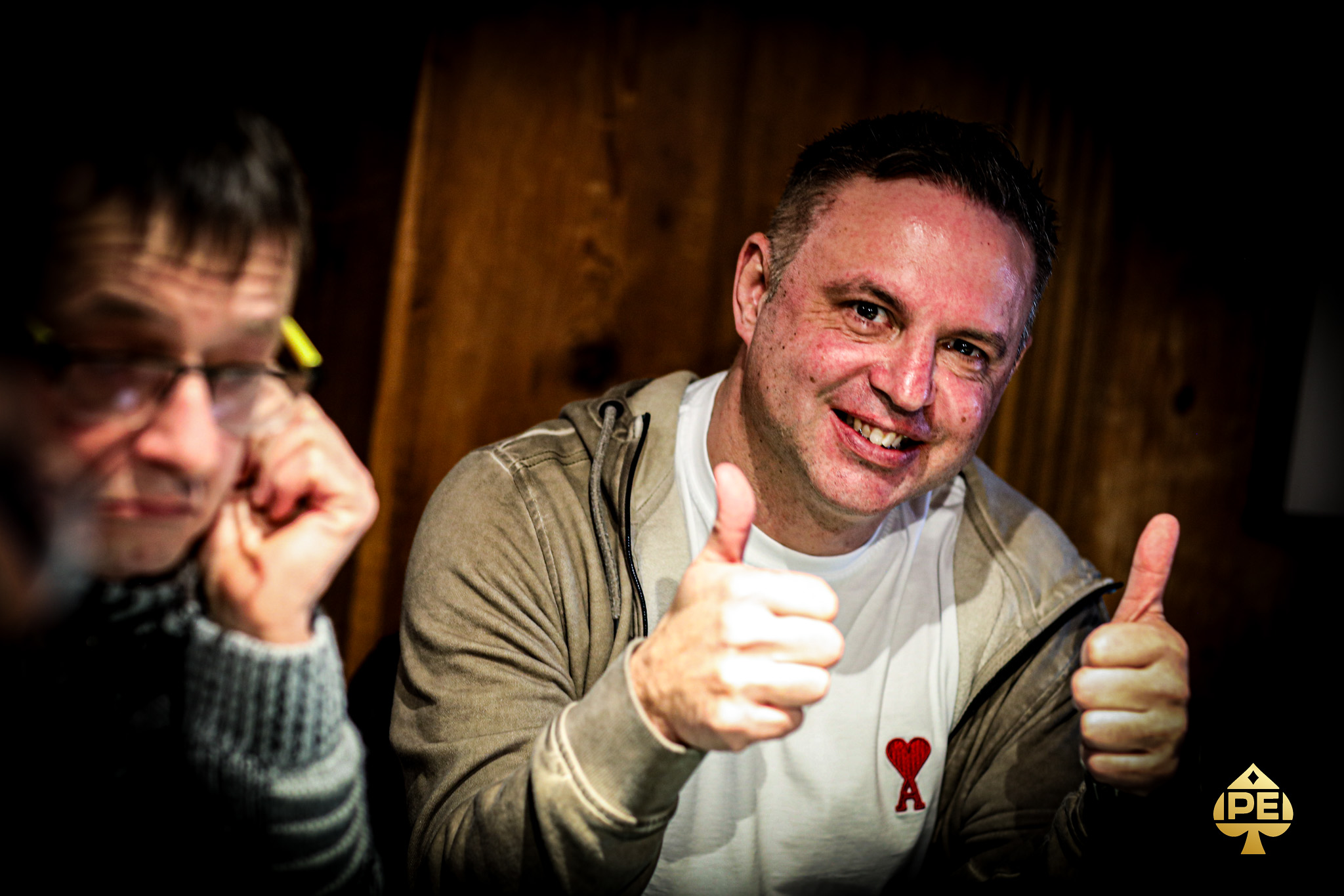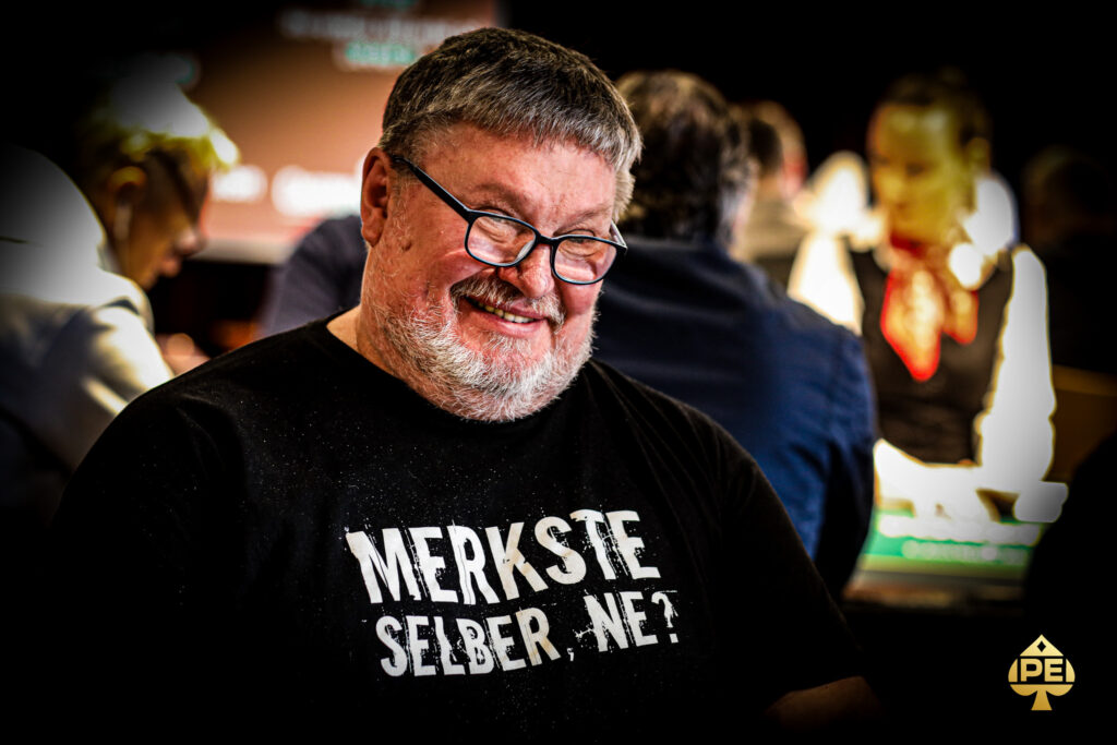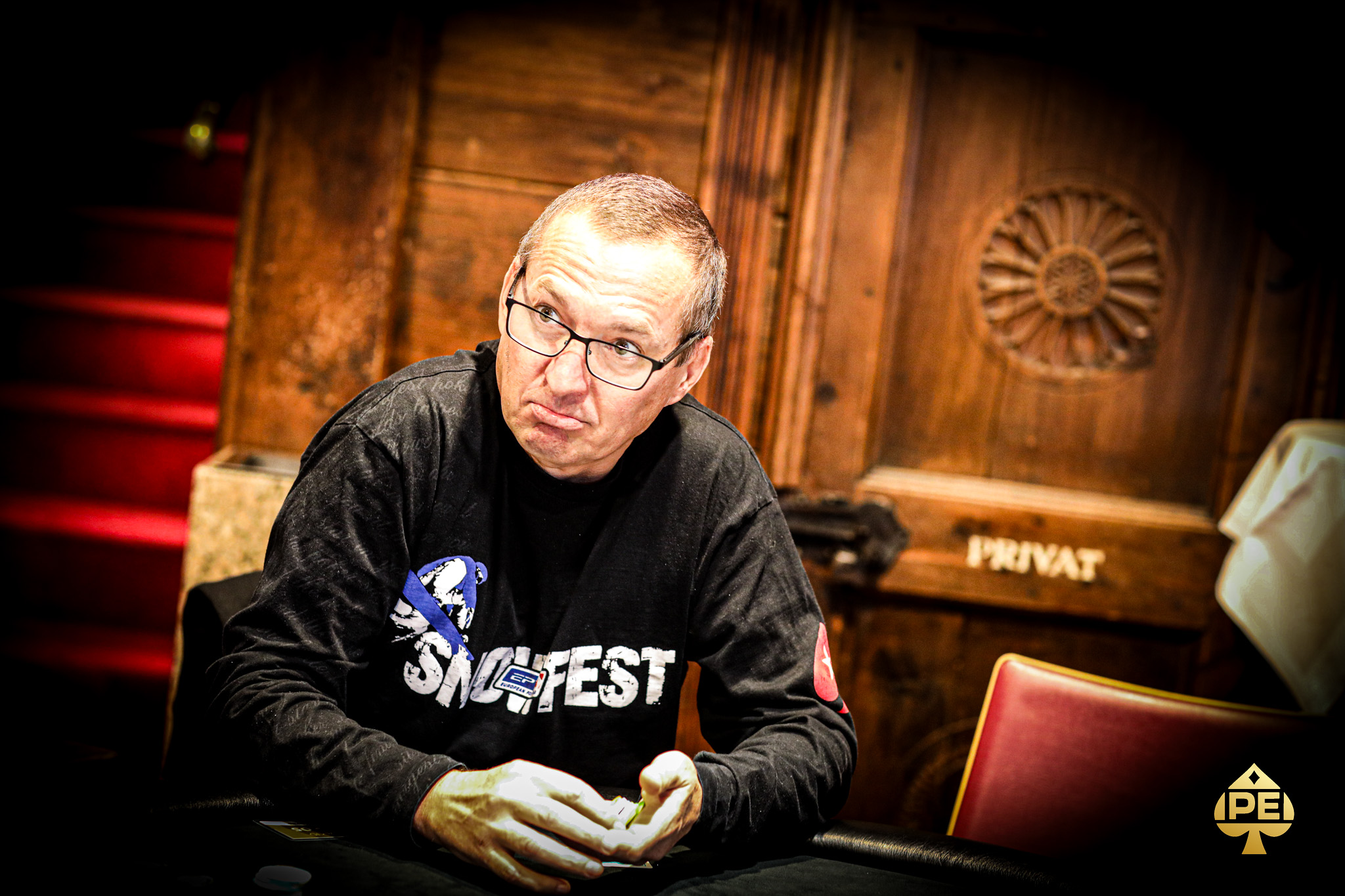 Mit 99 von 101 Spielern sind wir in Level 3, die Blinds 300/600/600. Der erste Seat open war unten, hier hat es gerade Bernhard Perner erwischt