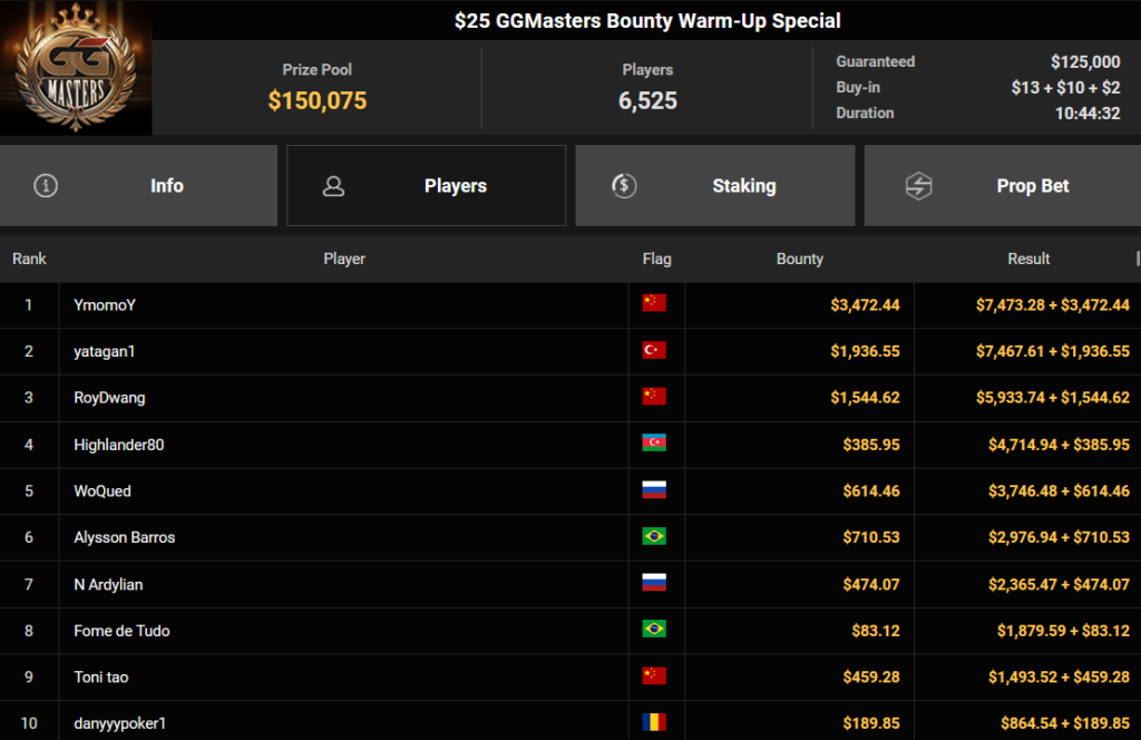| 28.01.2026 | Mi | 16:00 | $25 GGMasters Bounty Warm-Up Special | $25 | $150.000 |