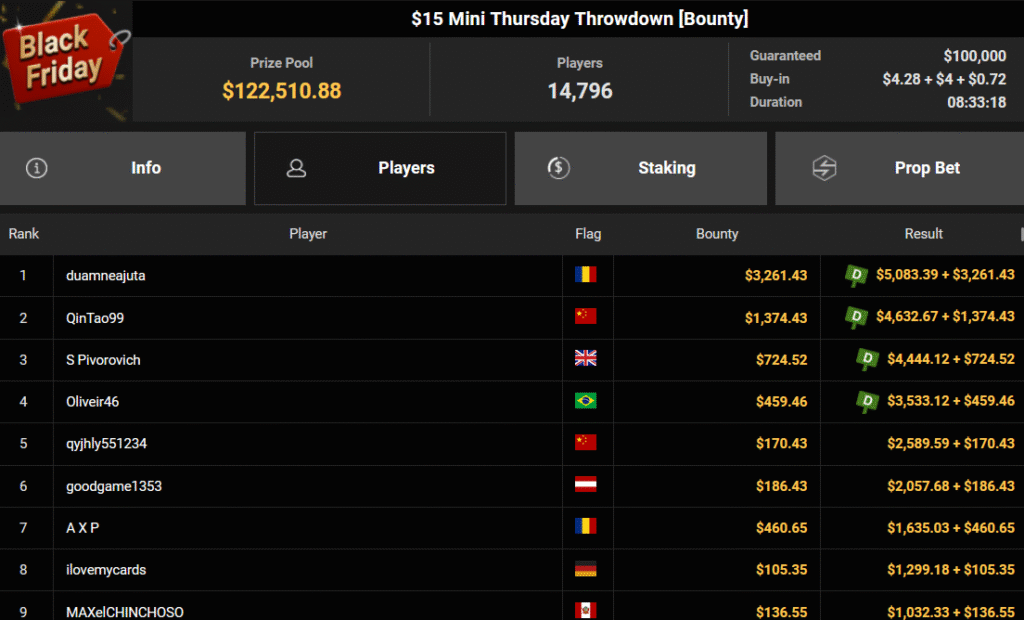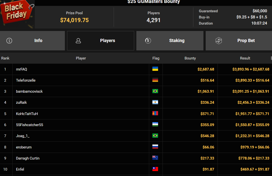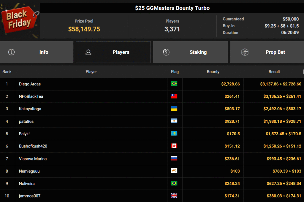Bis zum 1. Dezember gibt es die verschiedenen Turniere zum Vorzugspreis, die Turniere sind im Tab „Black Friday Week“ gelistet, weitere Infos findet Ihr auf den Seiten von GGPoker.