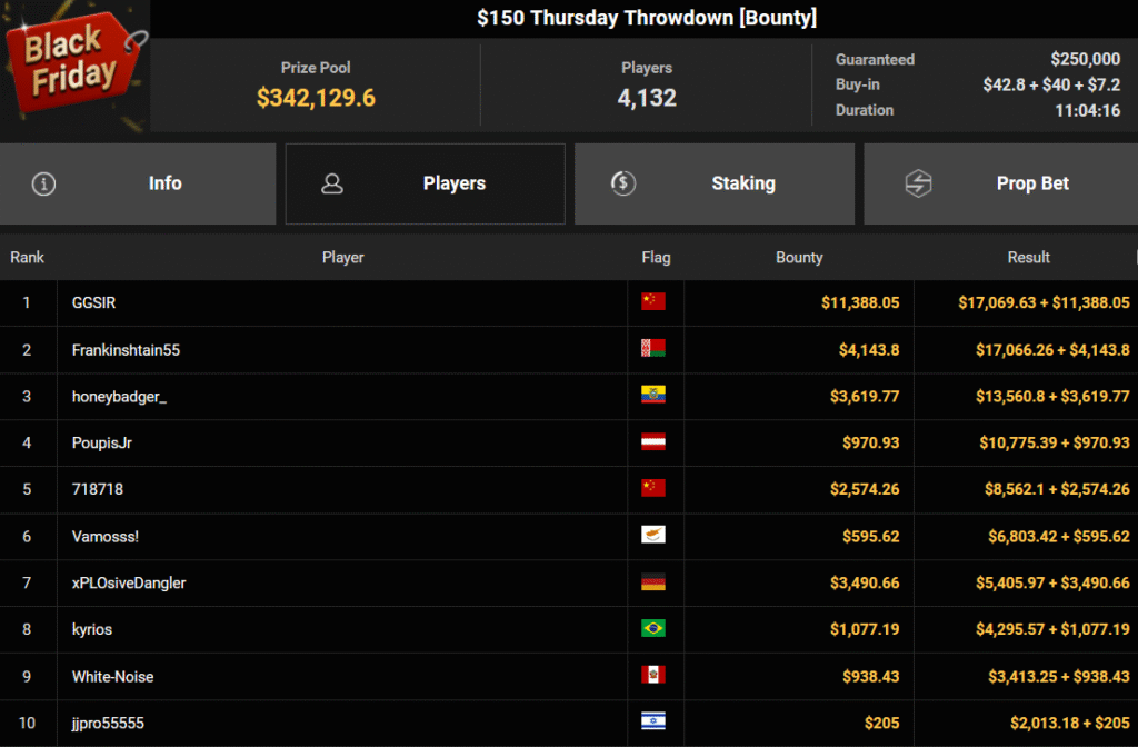 Die Spielerzahlen bei der Black Friday Week auf GGPoker sind weiterhin massiv, die Erfolge der DACHs lassen aber ein wenig nach.