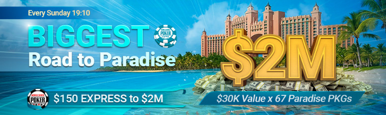 Kleines Geld für einen massiven Preispool, das trifft auf jeden Fall auch auf die „Road to Paradise“ zu. Unfassbare $60.000.000 Preisgeld sind beim $25k Super Main Event der WSOP Paradise garantiert. Und man braucht sicher mehr Glück als Geld, um sich zu einem $30k Package zu spielen. Denn für $150 geht es heute Express in die $2.500 Express Turniere, wo tatsächlich 67 (!) $30k Packages heute warten. Wer da nicht dabei ist, der ist wirklich selber schuld. Viel einfacher wird es nicht werden, um für sehr kleines Geld am Bahamas Traumstrand zu liegen.