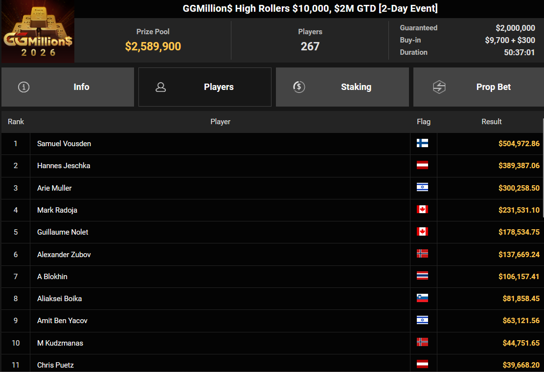 Fast hätte es mit dem zweiten Sieg beim $10.000 GGMillion$ auf GGPoker für Hannes Jeschka geklappt, am Ende musste er sich aber Samuel Vousden geschlagen geben.
