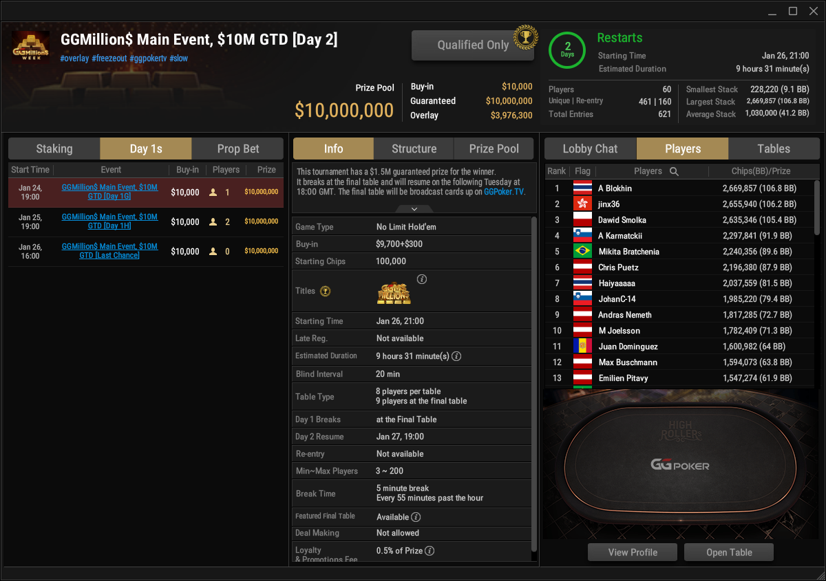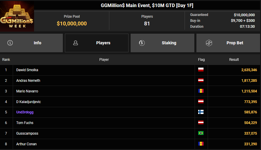 GGPoker: Nullnummer für die DACHs am Freitag der GGMillion$ Week