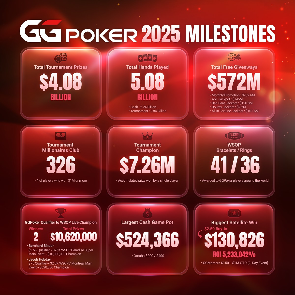 Es war ein neuerliches Rekordjahr für GGPoker und auch die World Series of Poker (WSOP) hat man auf ein neues Rekordlevel gehoben. Der weltgrößte Pokerroom zieht eine höchst erfolgreiche Bilanz für 2025.