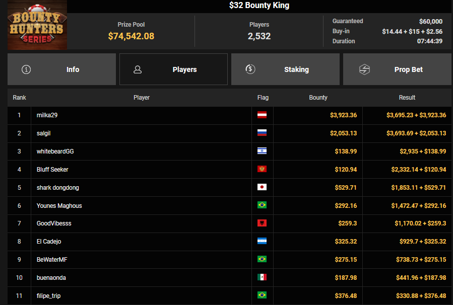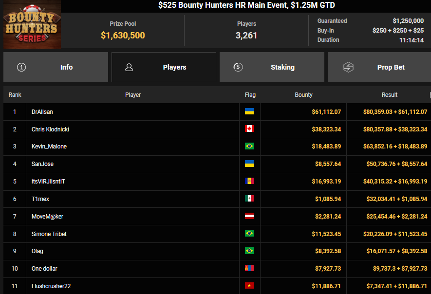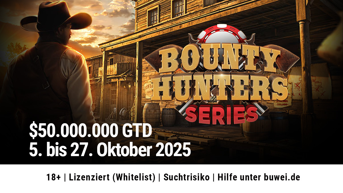Die Bounty Hunters Series geht schon in den Enspurt und so laufen auch die Flights beim $108 Mystery Bounty Main Event ($5.000.000 GTD) auf Hochtouren. Alle Turniere und auch die dazugehörigen Satellites gibt es im Client im „Bounty Hunters Series“ Tab. Weitere Infos findet Ihr auf den Seiten von GGPoker.
