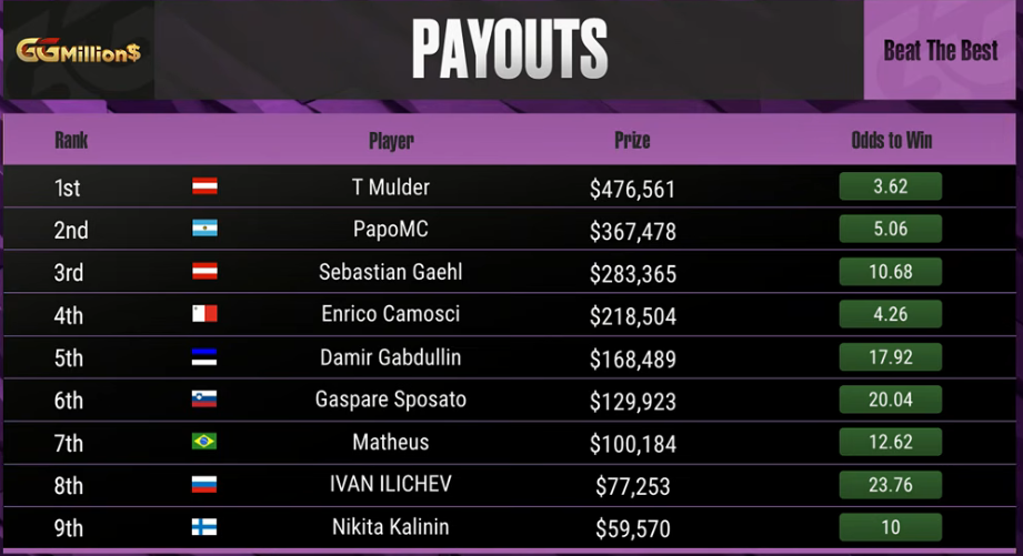 . Der Sieg besherte Teun Mulder $476.561 und das GGMillion$ live Package.