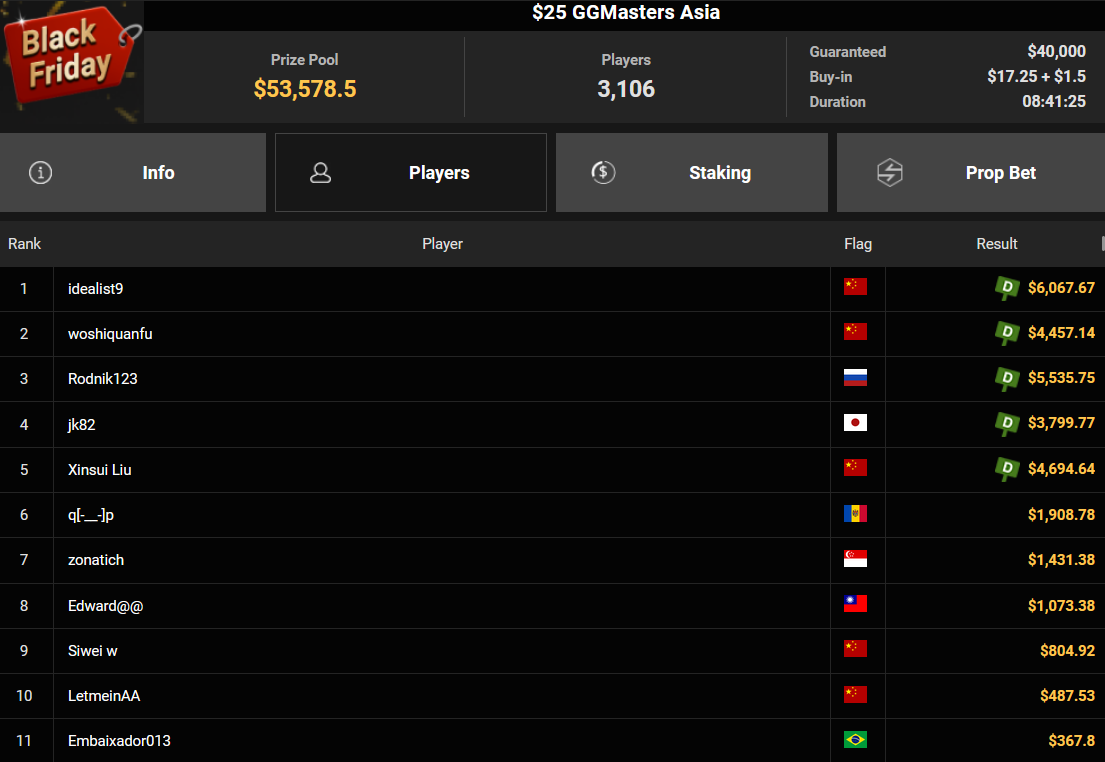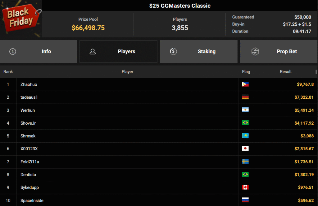 Bis zum 1. Dezember gibt es die verschiedenen Turniere zum Vorzugspreis, die Turniere sind im Tab „Black Friday Week“ gelistet, weitere Infos findet Ihr auf den Seiten von GGPoker.
