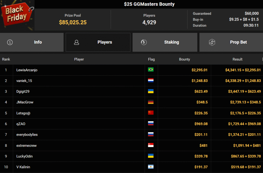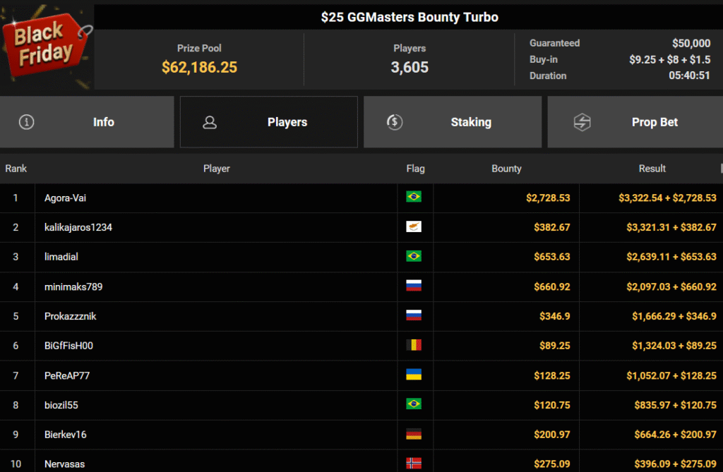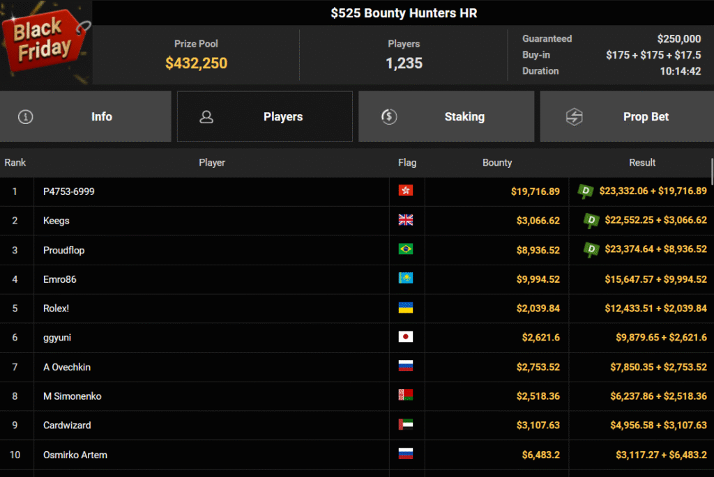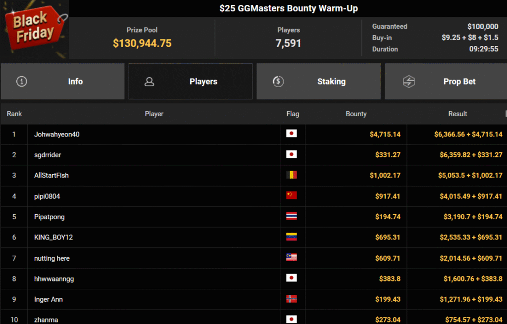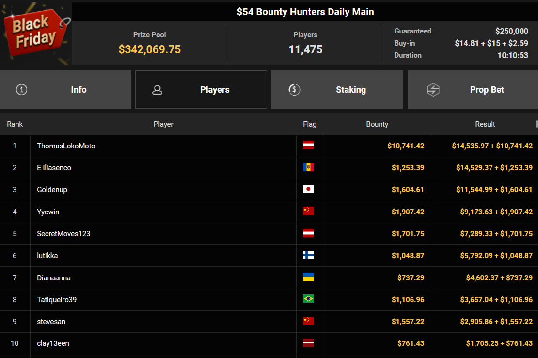 Auch der Freitag der Black Friday Week auf GGPoker überzeugte mit starken Zahlen, ThomasLokoMoto holte das Bounty Hunters Daily Main.