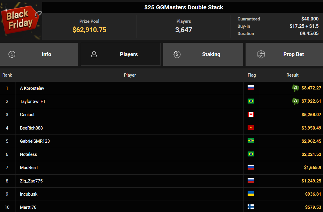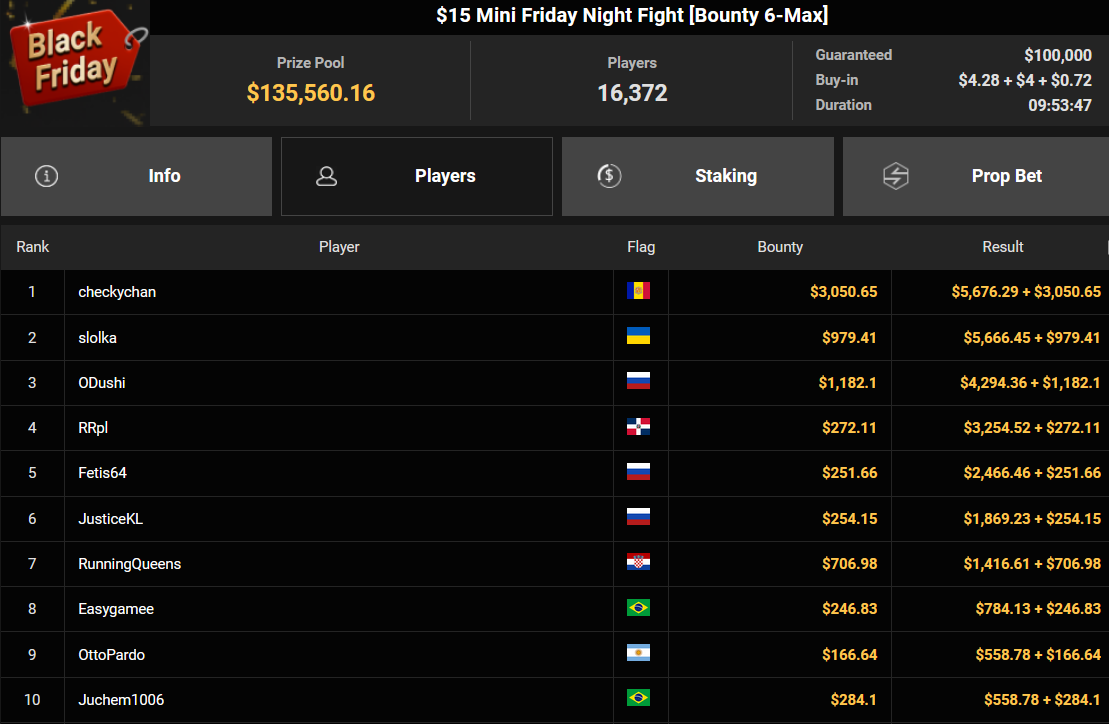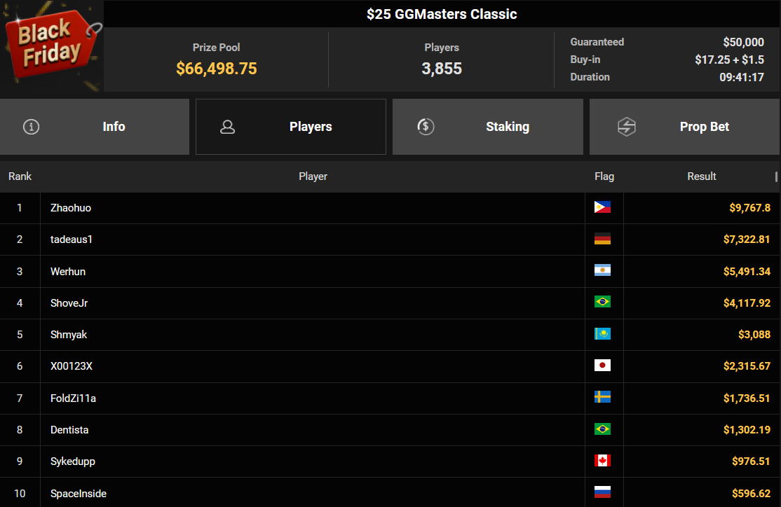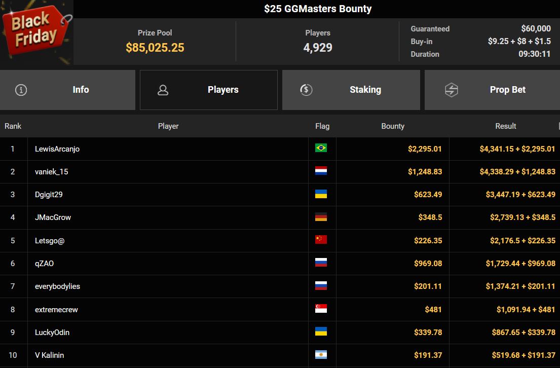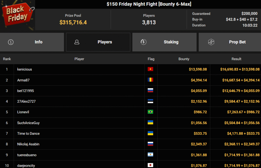 Auch der Freitag der Black Friday Week auf GGPoker überzeugte mit starken Zahlen, ThomasLokoMoto holte das Bounty Hunters Daily Main.