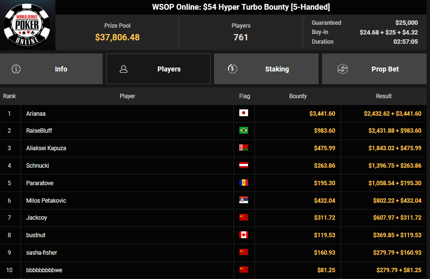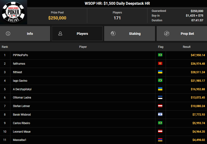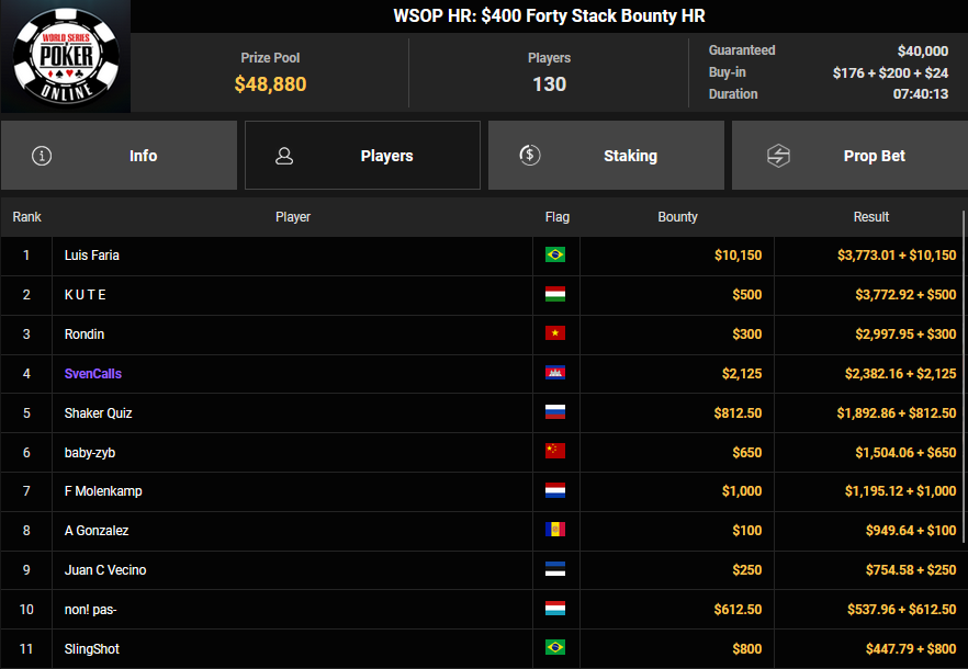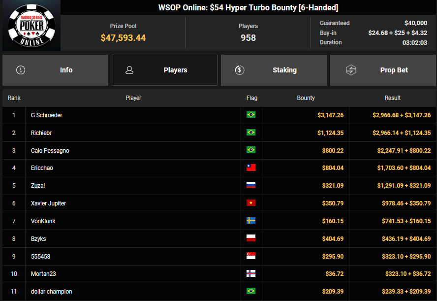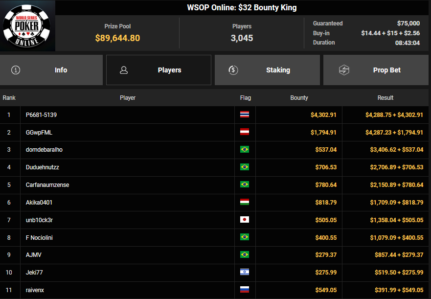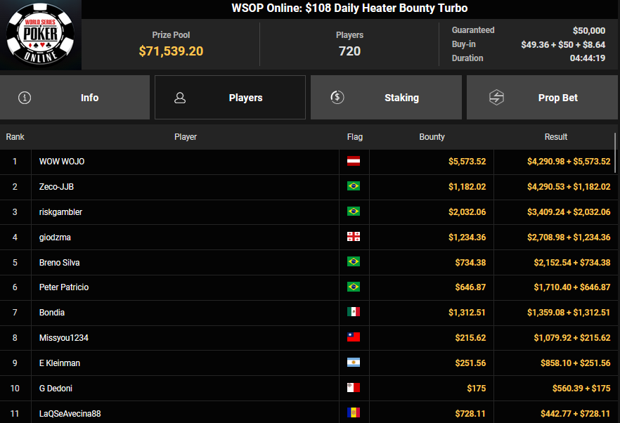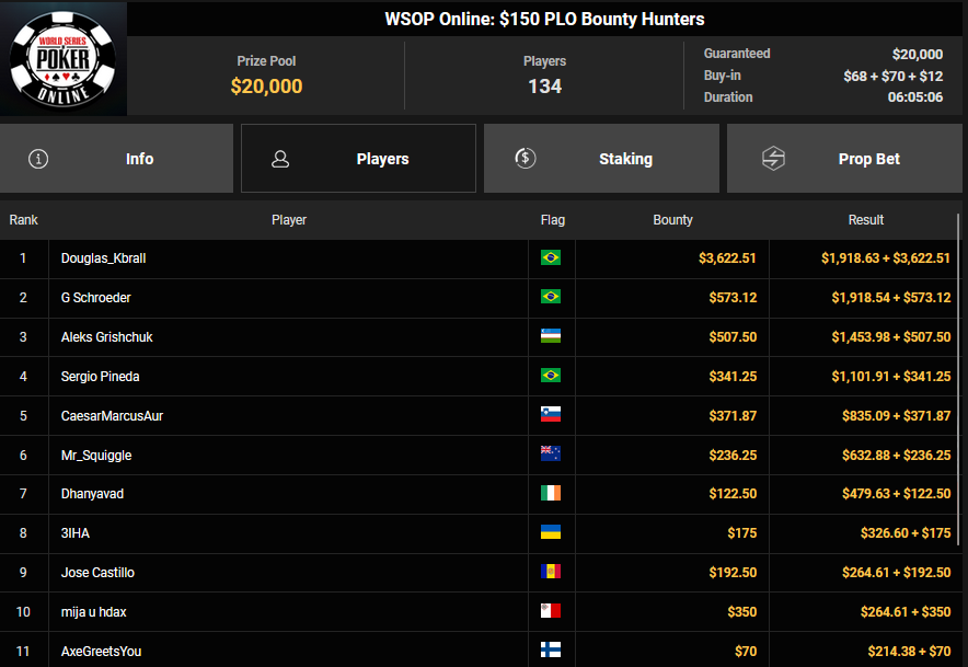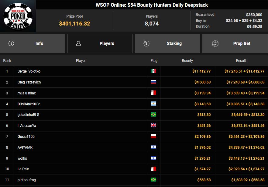 Weiterhin gibt es die Flights bei $400 Colossus ($4.000.000 GTD) und $400 Plossus ($1.000.000 GTD), auch beim $5k Main Event ($25.000.000 GTD) gibt es einen Heat. Schaut auf jeden Fall immer auf die Satellites, um euch bankroll-schonend zu den Turniertickets zu spielen. Turniere & Satellites sind im Client im „WSOP“ Tab zu finden, alle Infos zu den Events gibt es auch auf den Seiten von GGPoker.