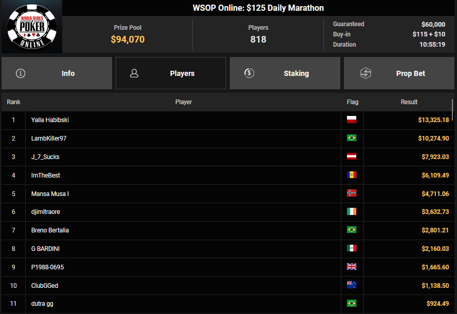Aktuell laufen die Flights beim $1.500 Millionaire Maker ($5.000.000 GTD), ab Sonntag geht es dann auch richtig beim $5k Main Event ($25.000.000 GTD) zur Sache. Schaut auf jeden Fall immer auf die Satellites, um euch bankroll-schonend zu den Turniertickets zu spielen. Turniere & Satellites sind im Client im „WSOP“ Tab zu finden, alle Infos zu den Events gibt es auch auf den Seiten von GGPoker.
