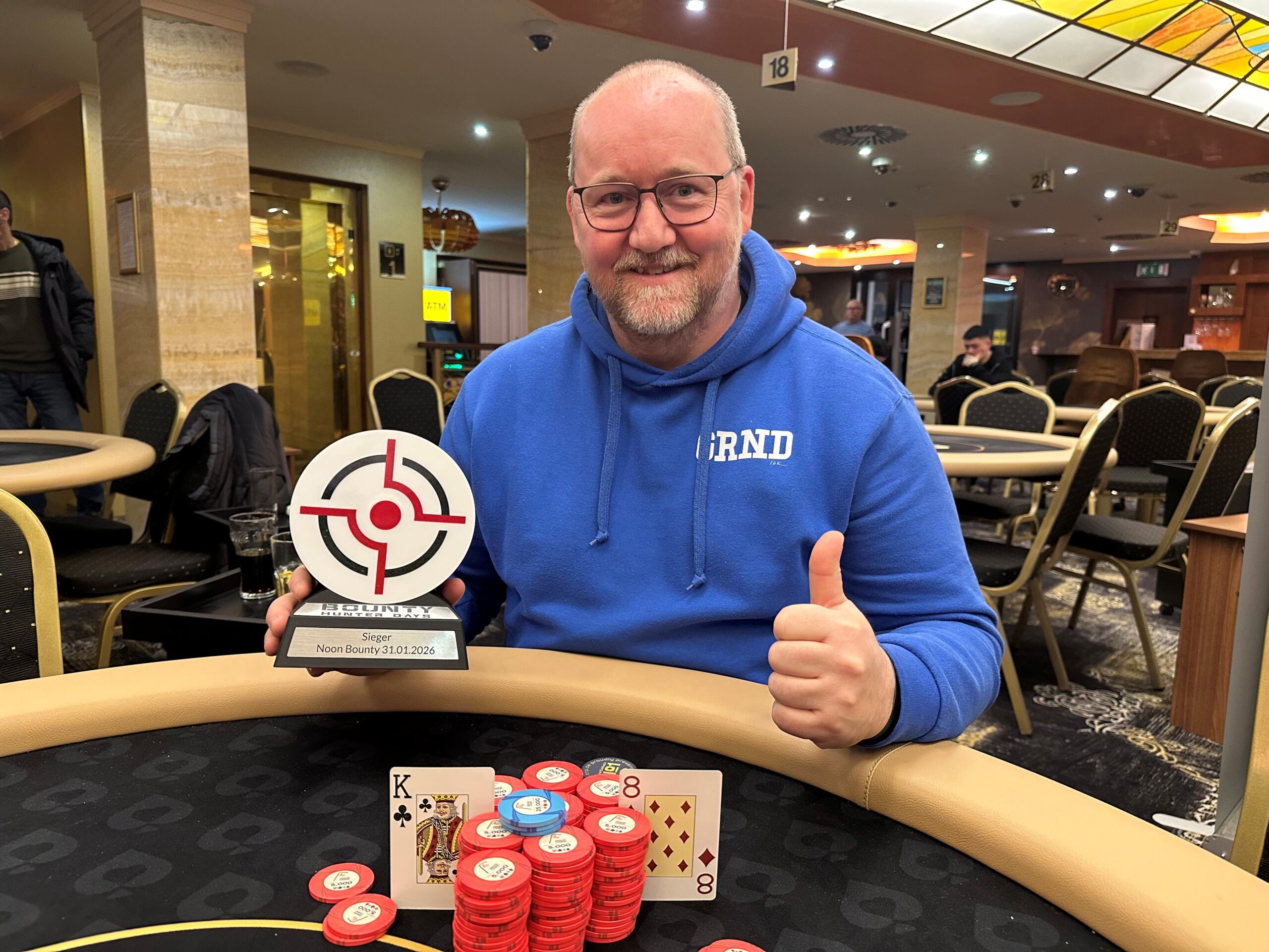 Neben dem Main Event gab es gestern, den 31. Januar, bei den Bounty Hunter Days powered by poker-trip.de im Grand Casino Aš (GCA) mit dem € 60 + 20 + 10 Noon Turbo Bounty und dem € 110 + 20 Super Saturday Second Chance zwei Side Events, die beide durch Deals entschieden wurden.