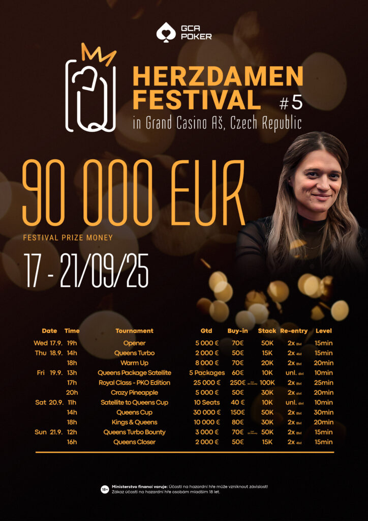 Was aus einer Idee von Mila Monroe und Natalie Hof heraus entstand, ist mittlerweile die größte Ladies-Community im deutschsprachigen Raum. Und auch das Herzdamen Festival kann sich jedes Jahr sehen lassen. Hier pokern nicht die Ladies, sondern hier wird mit den Ladies gepokert. Der Frauenanteil bei den Turnieren ist sehr hoch, die Stimmung grandios und auch die Preisgelder können sich bei moderaten Buy-Ins wieder sehen lassen. Highlight ist der € 130 + 20 Queens Cup (€ 30.000 GTD).