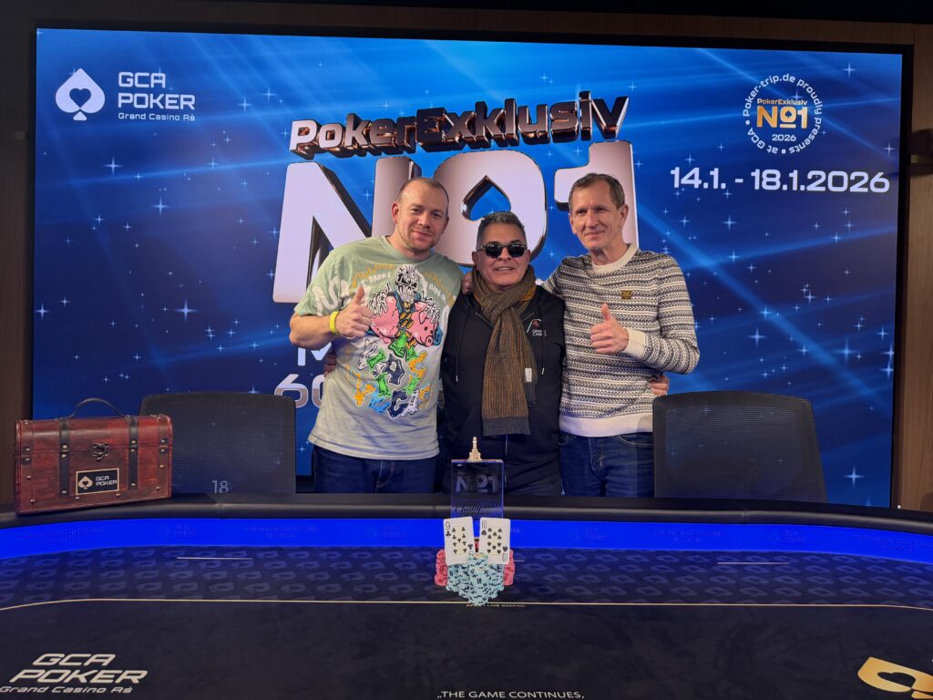 Heute geht es bereits um 13 Uhr in den zweiten und letzten Flight beim Main Event, dazu kommen um 14 Uhr das € 53 + 7 Turbo (€ 3.000 GTD/15k/15′) und um 17 Uhr Stephan’s Crazy Pineapple mit einem Buy-In von € 55 + 30 + 15 (€ 10.000 GTD/30k/20′). An den Cash Game Tischen wird wie gewohnt ab den Blinds  € 1/2 NLH bzw. € 2/2 PLO gestartet. Aktuelles zum GCA Poker Angebot findet Ihr in der Facebook Gruppe, alle Details gibt es auf grandcasinoas.eu.