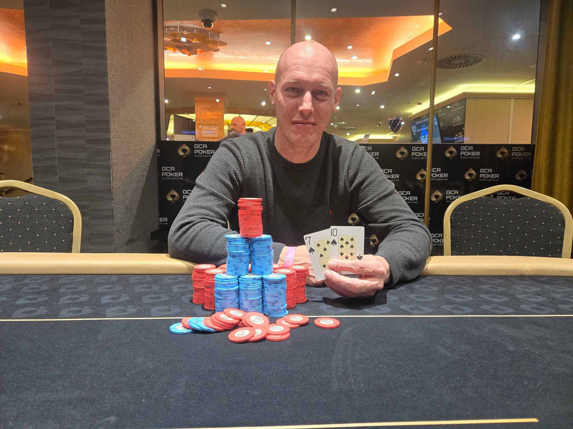 Das € 360 + 40 GCA High Roller Masters war das teuerste Turnier vom Wochenende, dafür garantierte man hier aber auch € 30.000 Preisgeld. Gespielt wurde mit 100.000 Chips und 25 Minuten Levels. 61 Spieler kauften sich ein, weitere zehn Mal wurde nachgelegt und so waren die garantierten € 30.000 im Pot. Die top 12 sollten Geld mitnehmen, € 750 warteten als Min-Cash. € 8.250 lagen für den Sieger bereit und es war Witti, der sich letztlich gegen Slavomir Rakovan durchsetzte und den Sieg holte, Slavomir blieben € 5.550 zum Trost.