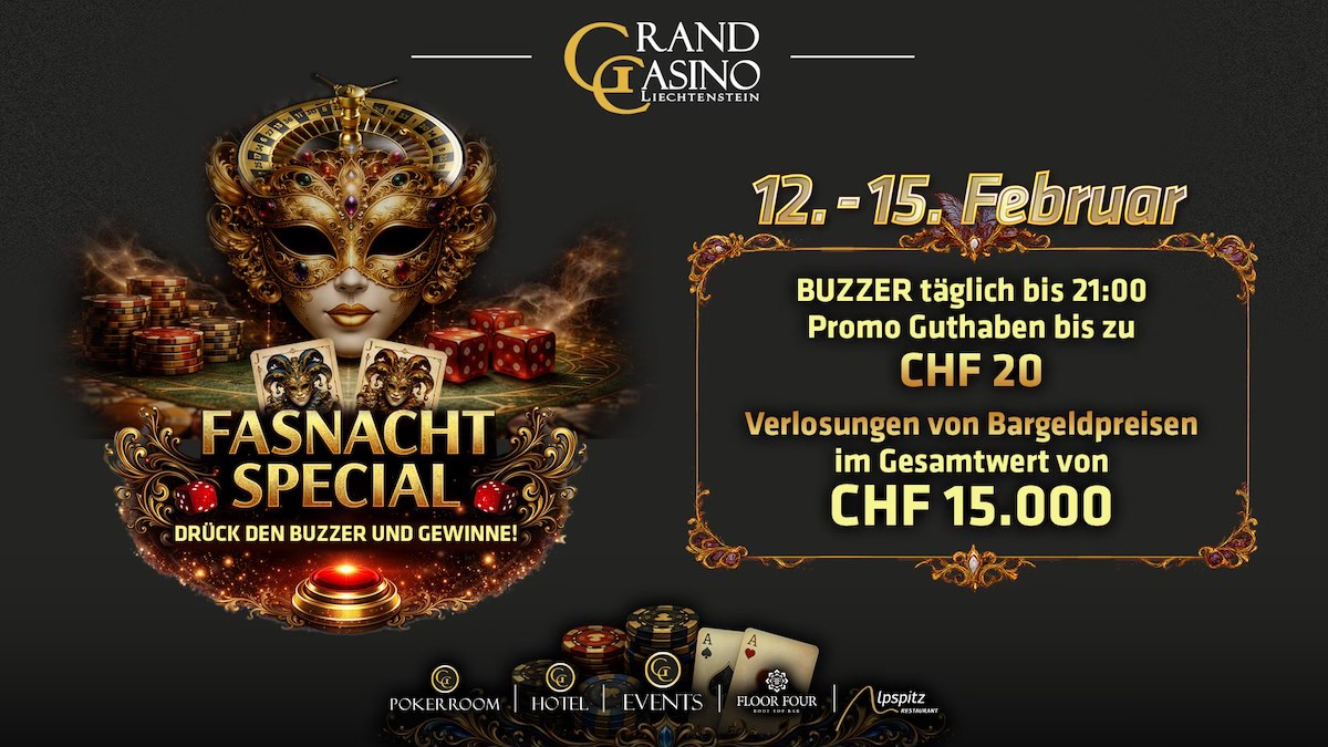 Kein „Helau“, „Alaaf“ oder „LeiLei“, aber satte Karnevals (Poker)Action steht im Grand Casino Liechtenstein (GCLI) am Wochenende an.