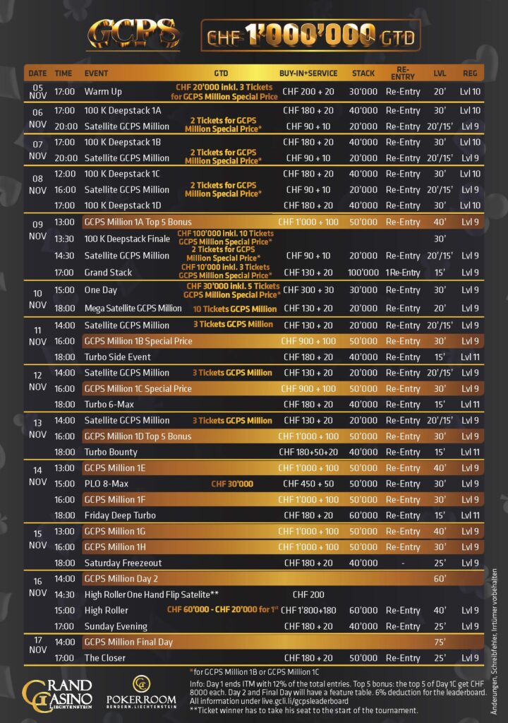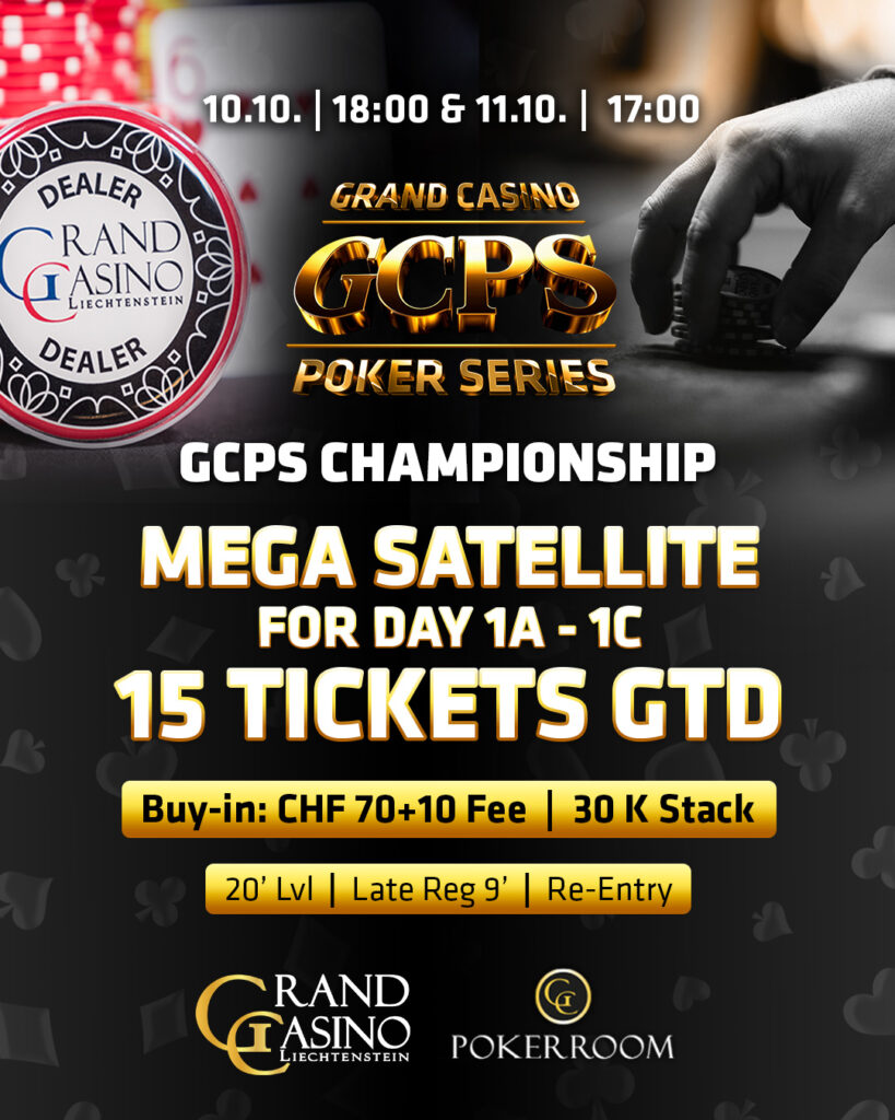 Es dreht sich schon alles um die CHF 500.000 GTD GCPS Championship im Grand Casino Liechtenstein (GCLI). Gestern, den 10. Oktober, konnten beim ersten der beiden CHF 70 + 10 Mega Satellites 16 Tickets à CHF 550 ausgespielt werden.