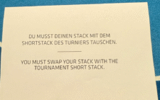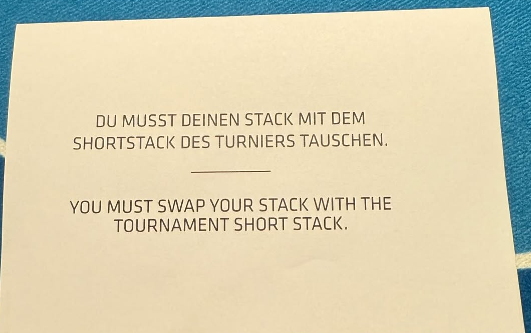 Während beim Mystery Bounty alles in geordneten Bahnen verlief, herrschte beim Bounty Circus das erwartete Chaos. Aber definitiv im positiven Sinne. Für das Buy-in gab es 50.000 Chips, die Blinds wurden alle 20 Minuten erhöht. Die Actionkarten sorgten für entsprechend Action und es war auf jeden Fall das einzige Turnier, das dieses Jahr in Europa gespielt wurde, wo man auf Aufforderung mit dem Shortstack des Turniers den Stack tauschen musste. Und viele mehr. Die Spieler hatten richtig Spaß und es wird sich irgendwann eine Neuauflage geben.